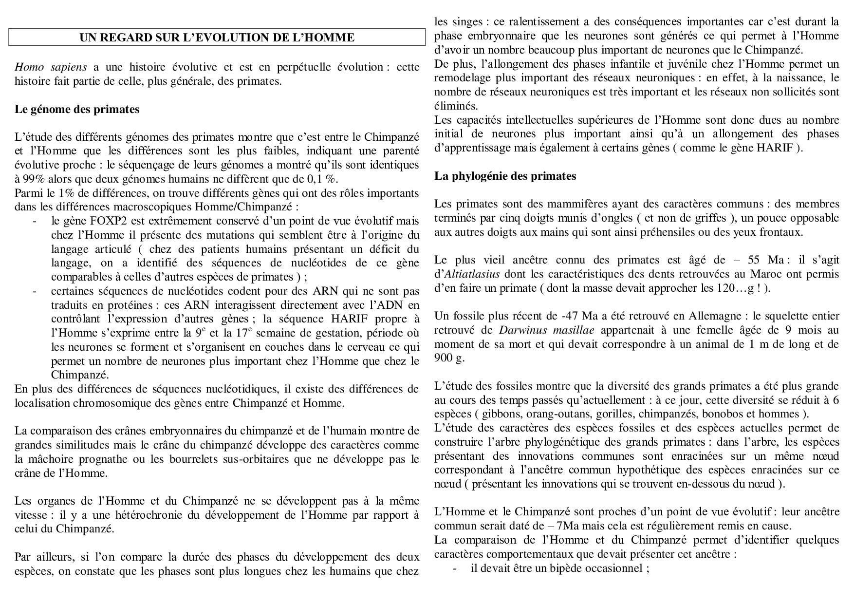 Un regard sur l’évolution de l’Homme - Résumé de cours 1