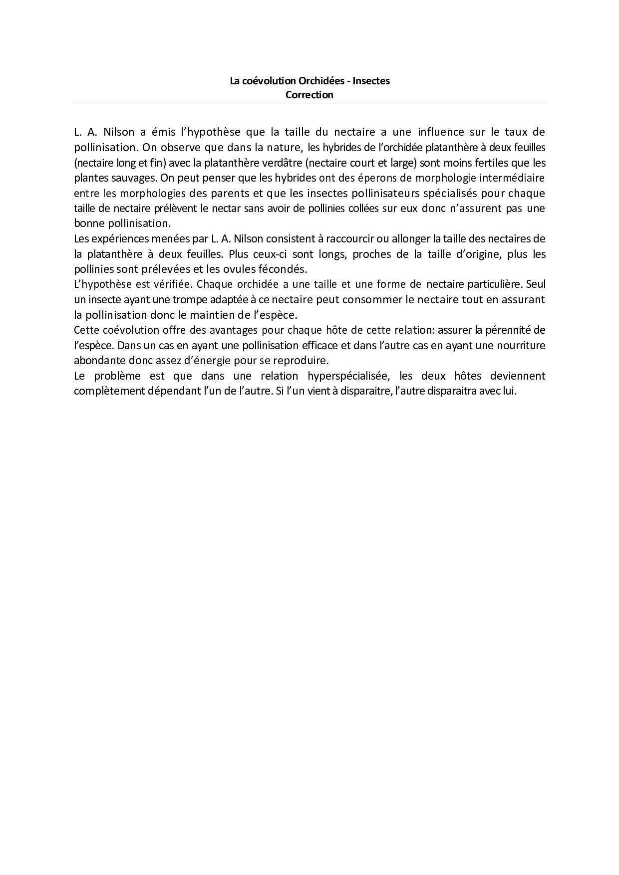 La coévolution Orchidées-Insectes - Exercice corrigé