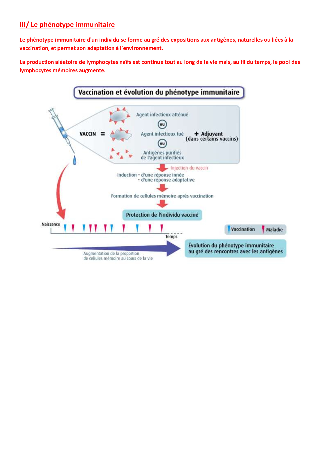 Le phénotype immunitaire au cours de la vie - Résumé de cours 1