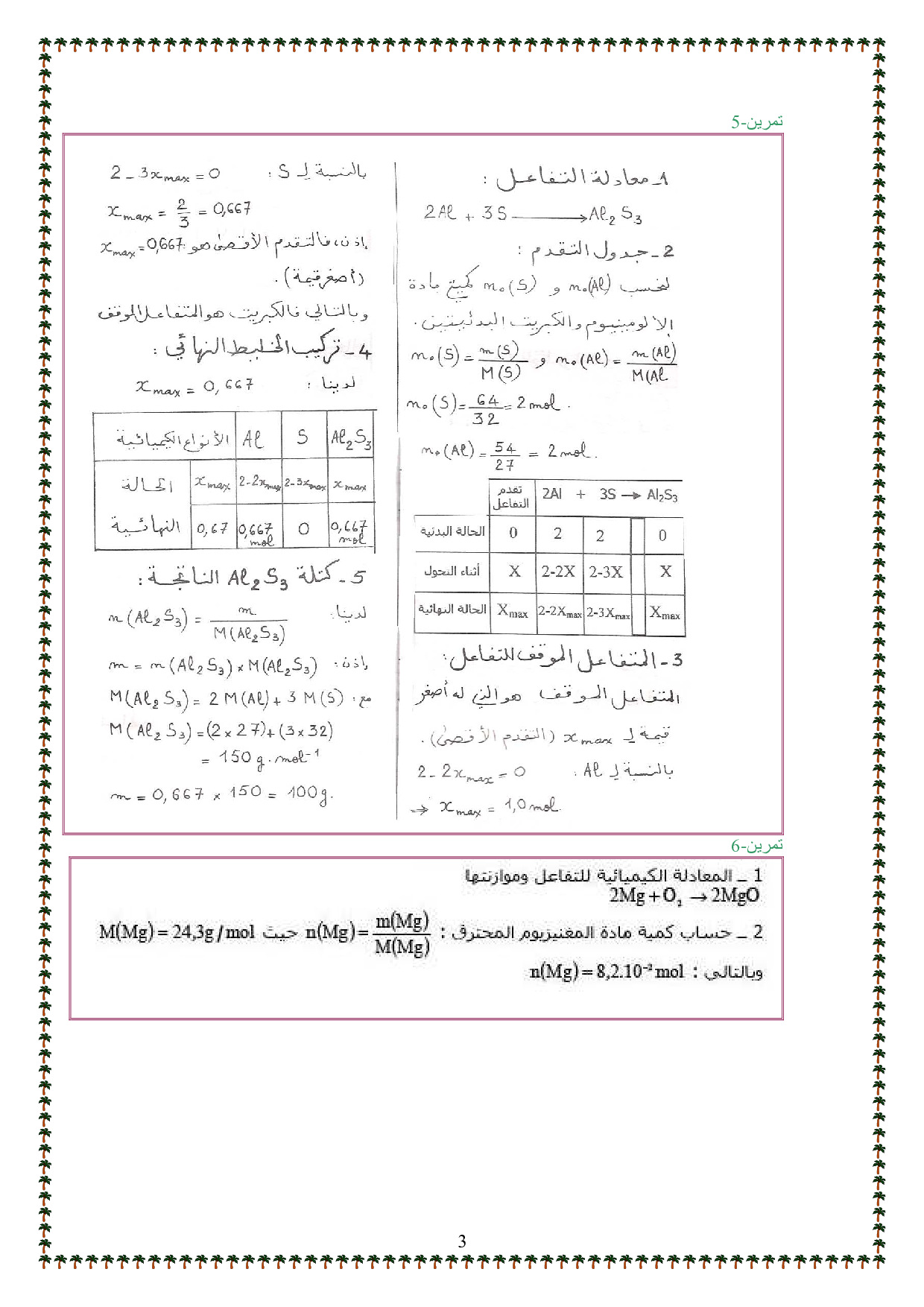 التحول الكيميائى وحصيلة المادة - تصحيح سلسلة التمارين 1