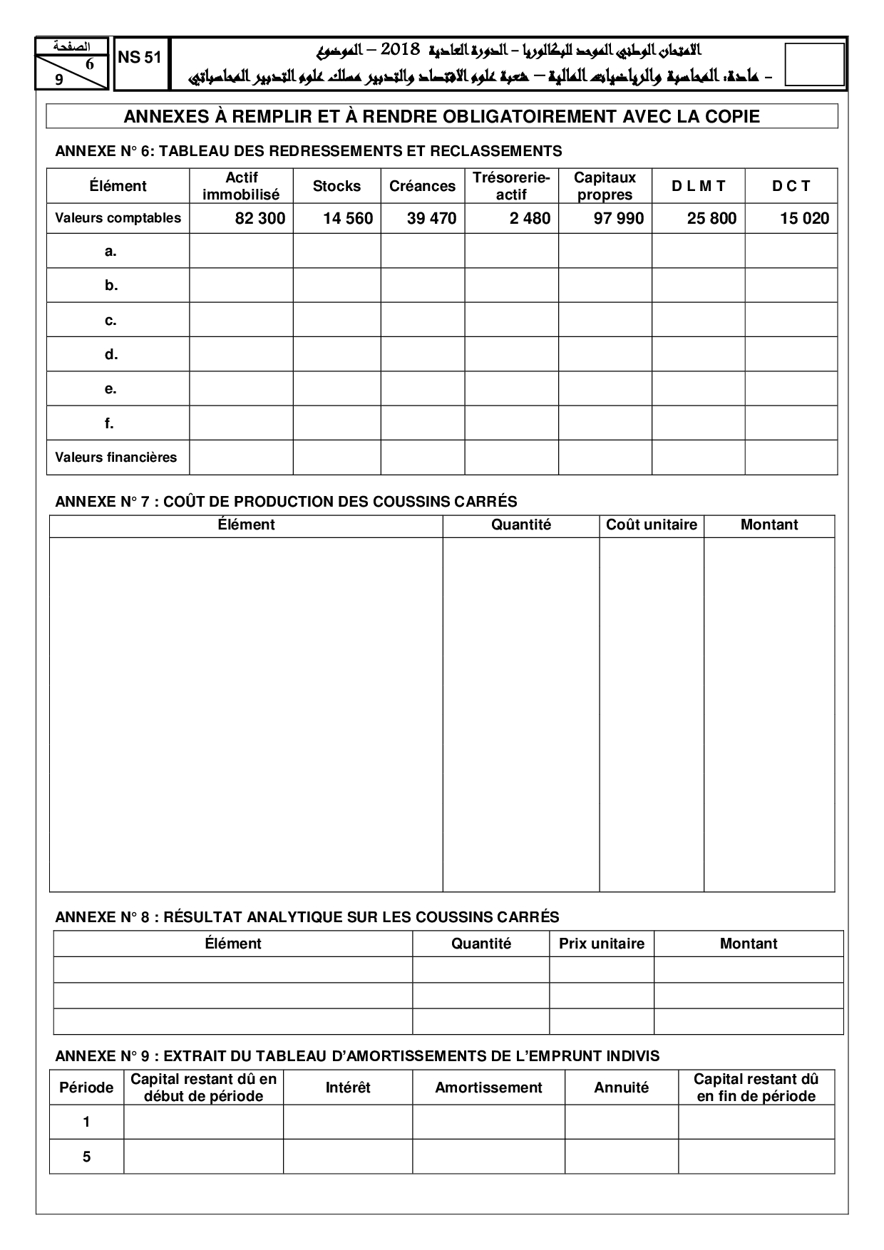 Examen Comptabilité 2 Bac SGC 2018 Session Normale - Sujet