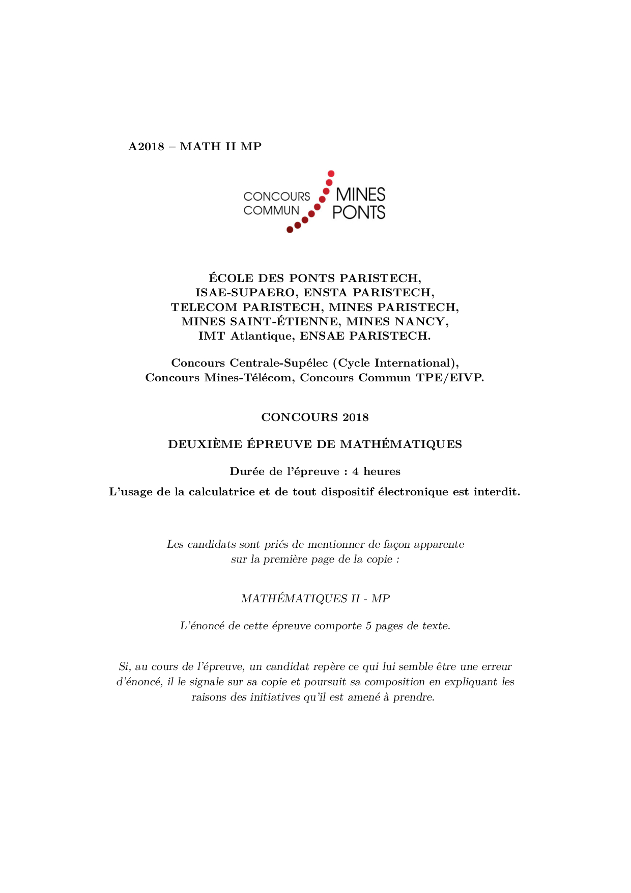 Mines-Ponts MP 2018 Maths 2 - Sujet