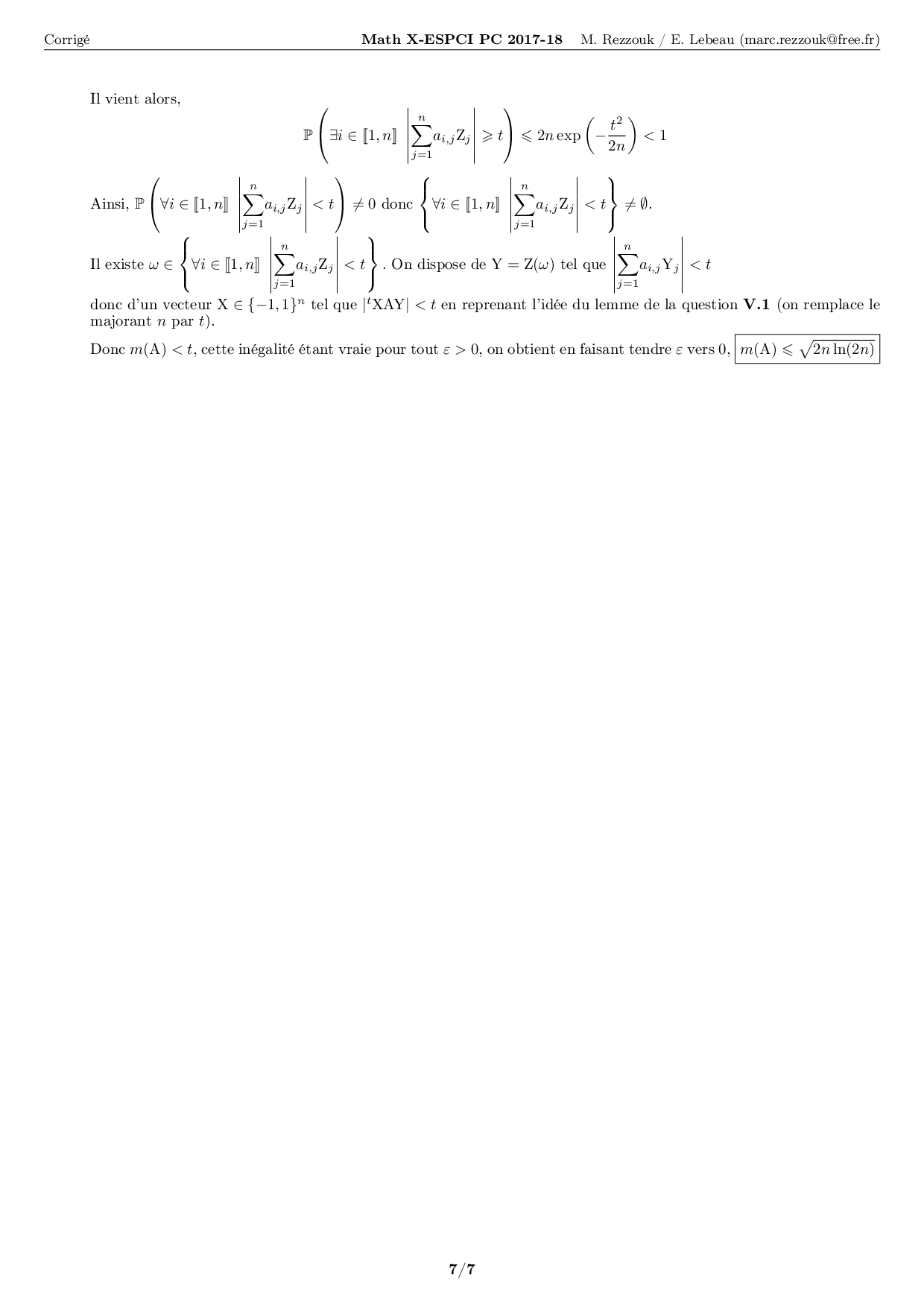 X-ENS-ESPCI PC 2018 Maths - Corrigé