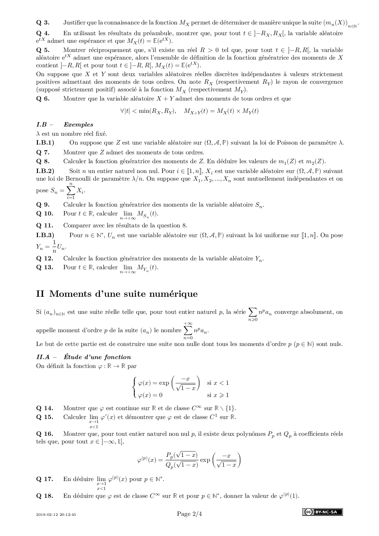 Centrale-Supelec PSI 2018 Maths 2 - Sujet