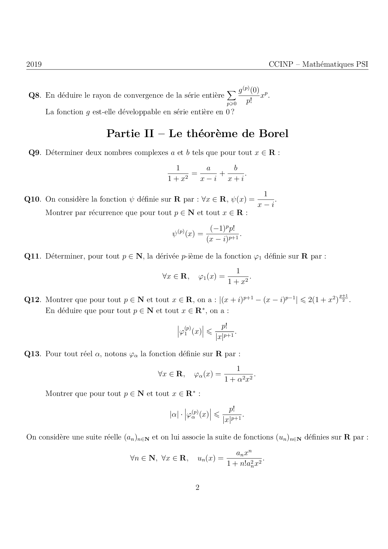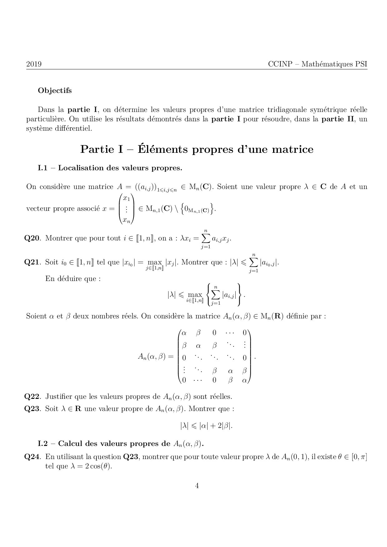 CCP PSI 2019 Maths - Sujet