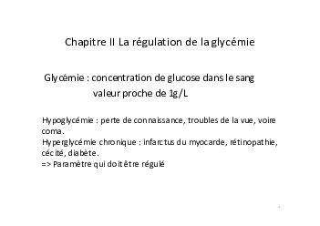 La régulation de la glycémie - Cours 2