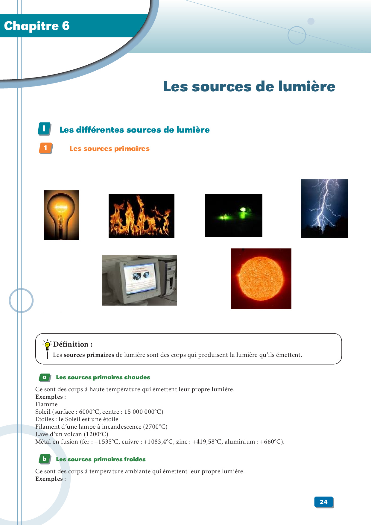 Les sources de lumière - Cours