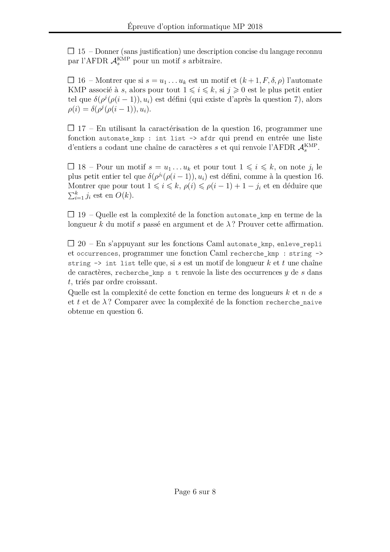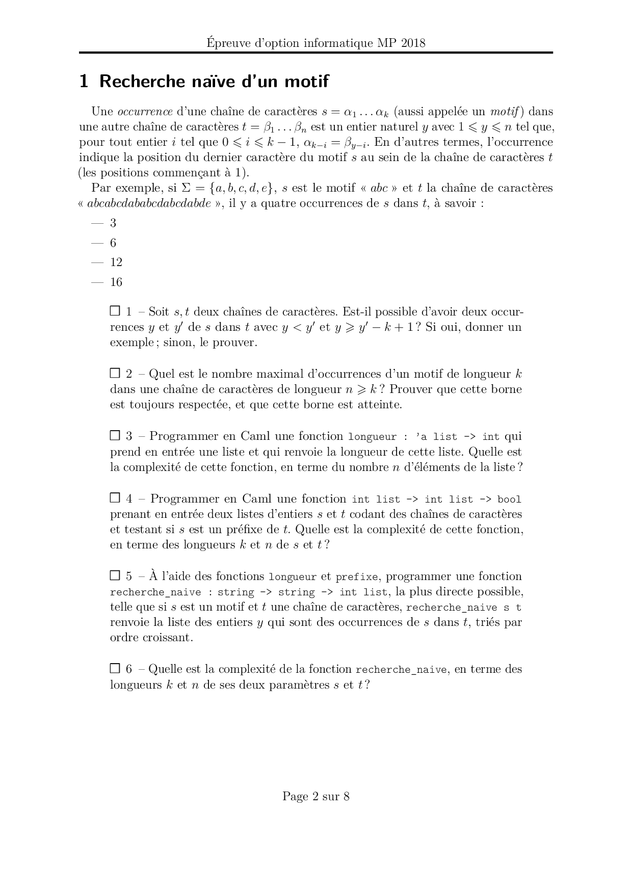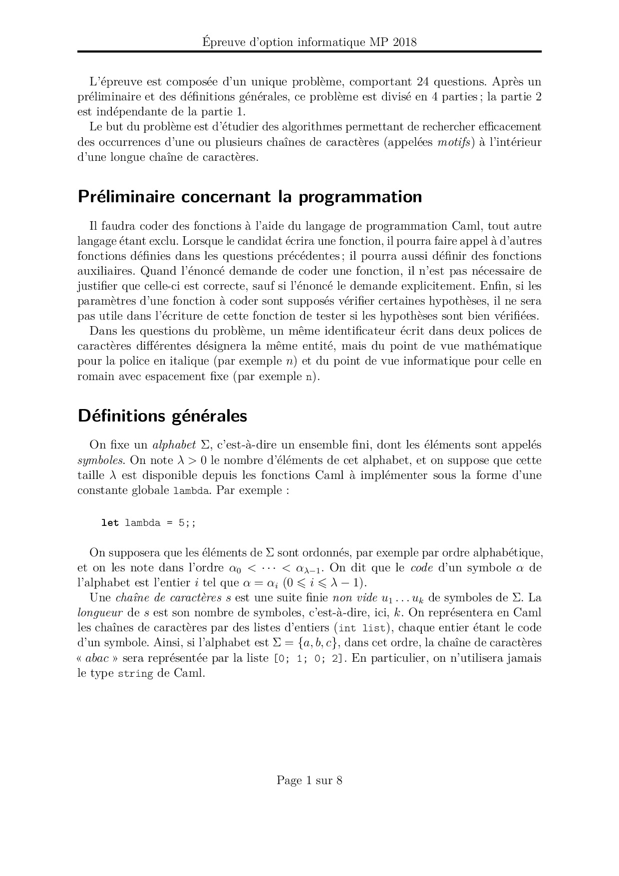 Mines-Ponts MP 2018 Informatique Epreuve