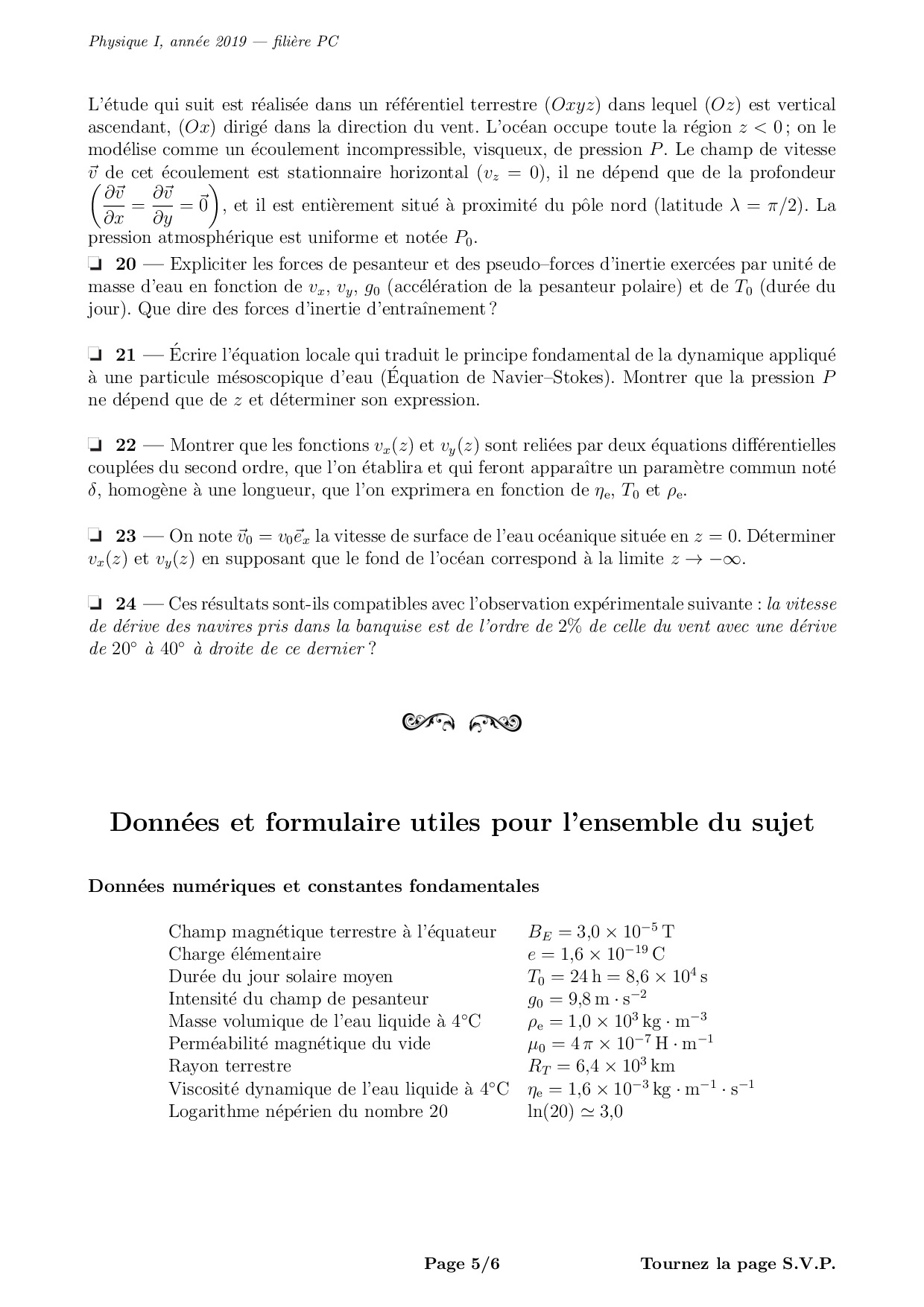 Mines-Ponts PC 2019 Physique 2 Enoncé