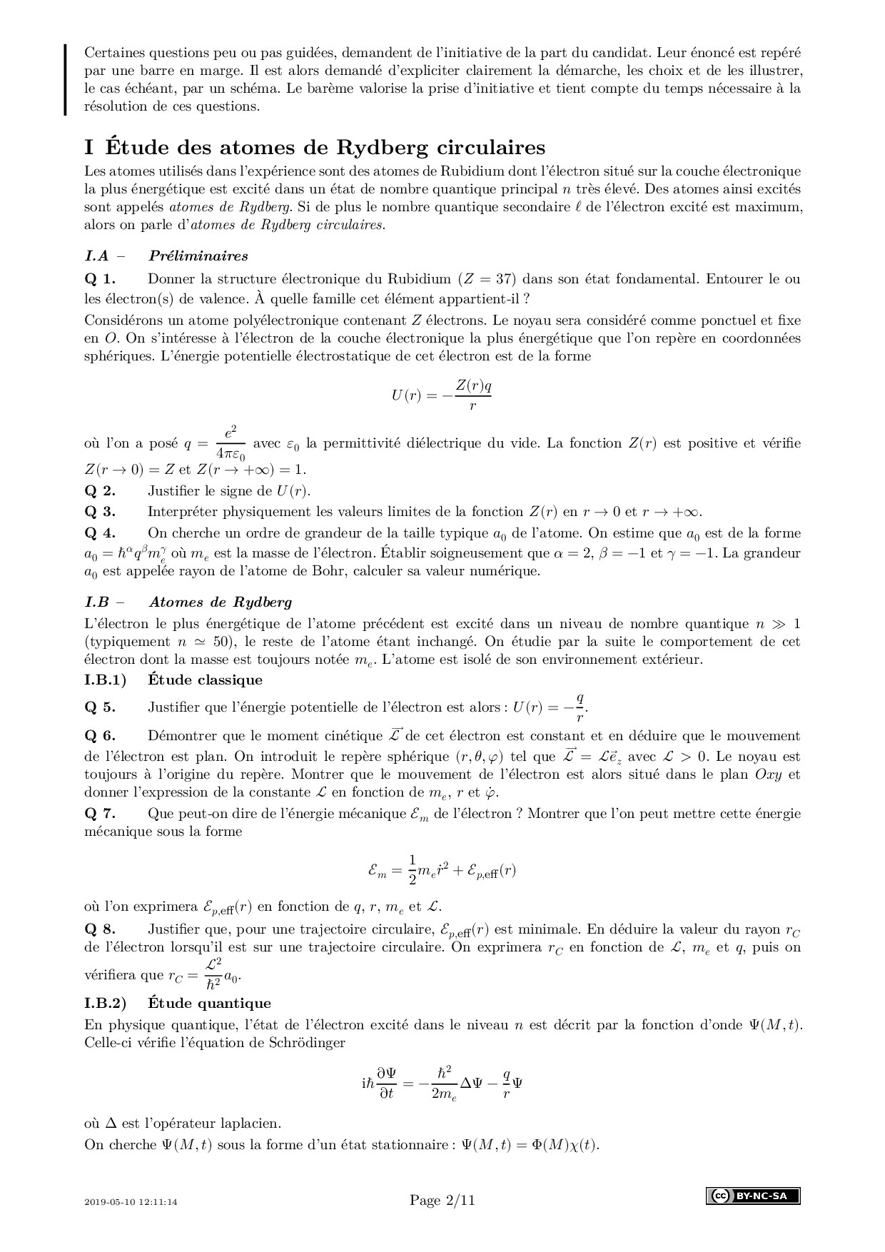 Centrale-Supelec MP 2019 Physique-Chimie 1 Epreuve