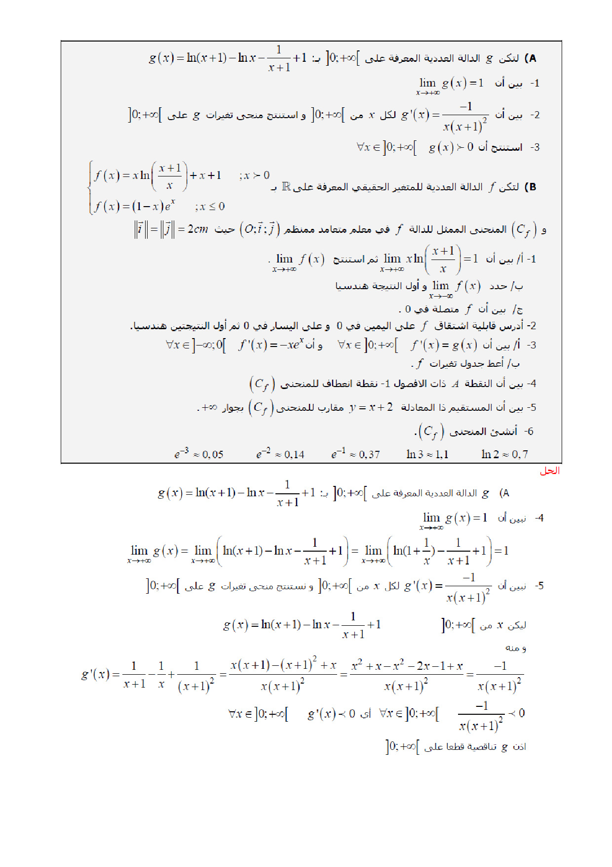 الدوال اللوغاريتمية - تمارين محلولة 2