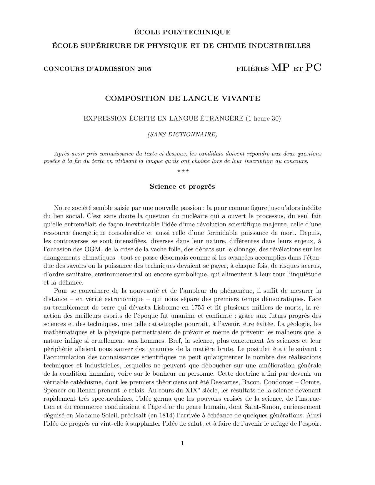 X-ENS MP-PC 2005 Langues vivantes