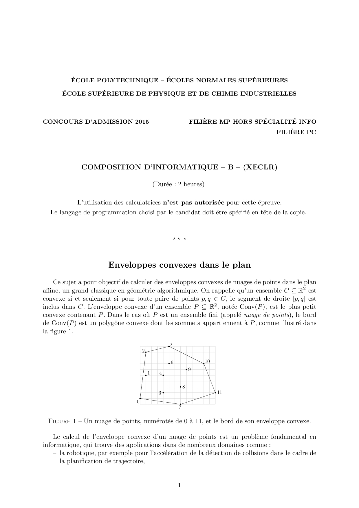 X-ENS Informatique 2015 MP-PC - Sujet