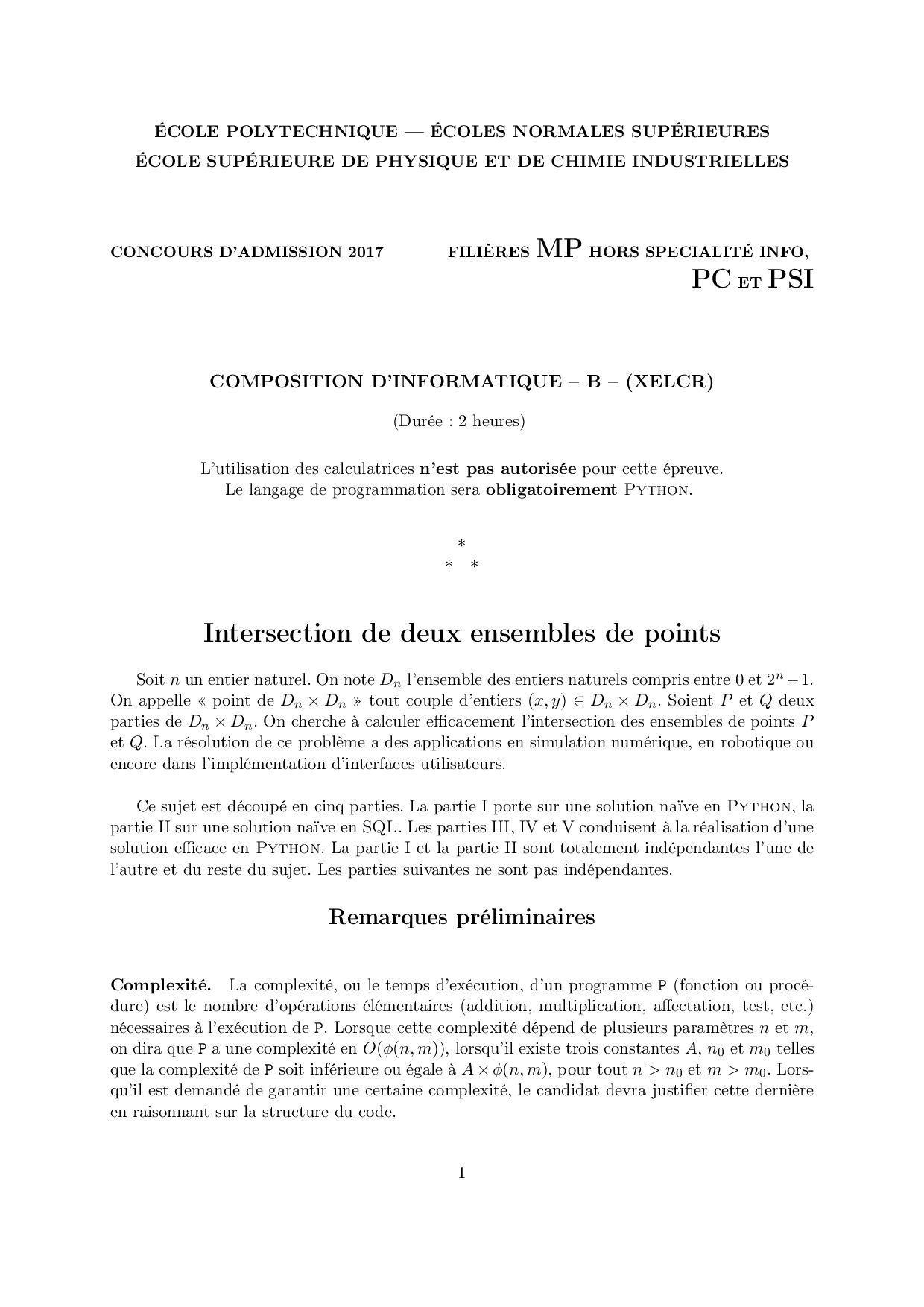X-ENS Informatique 2017 MP-PC-PSI - Sujet