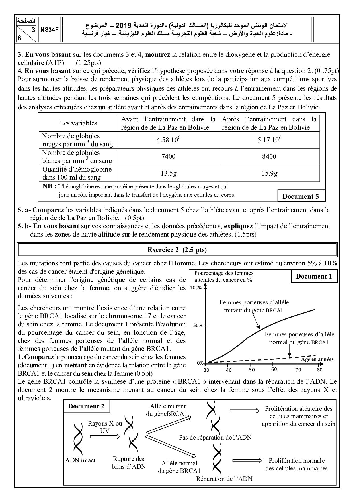 Examen National SVT Sciences Physiques 2019 Normale - Sujet