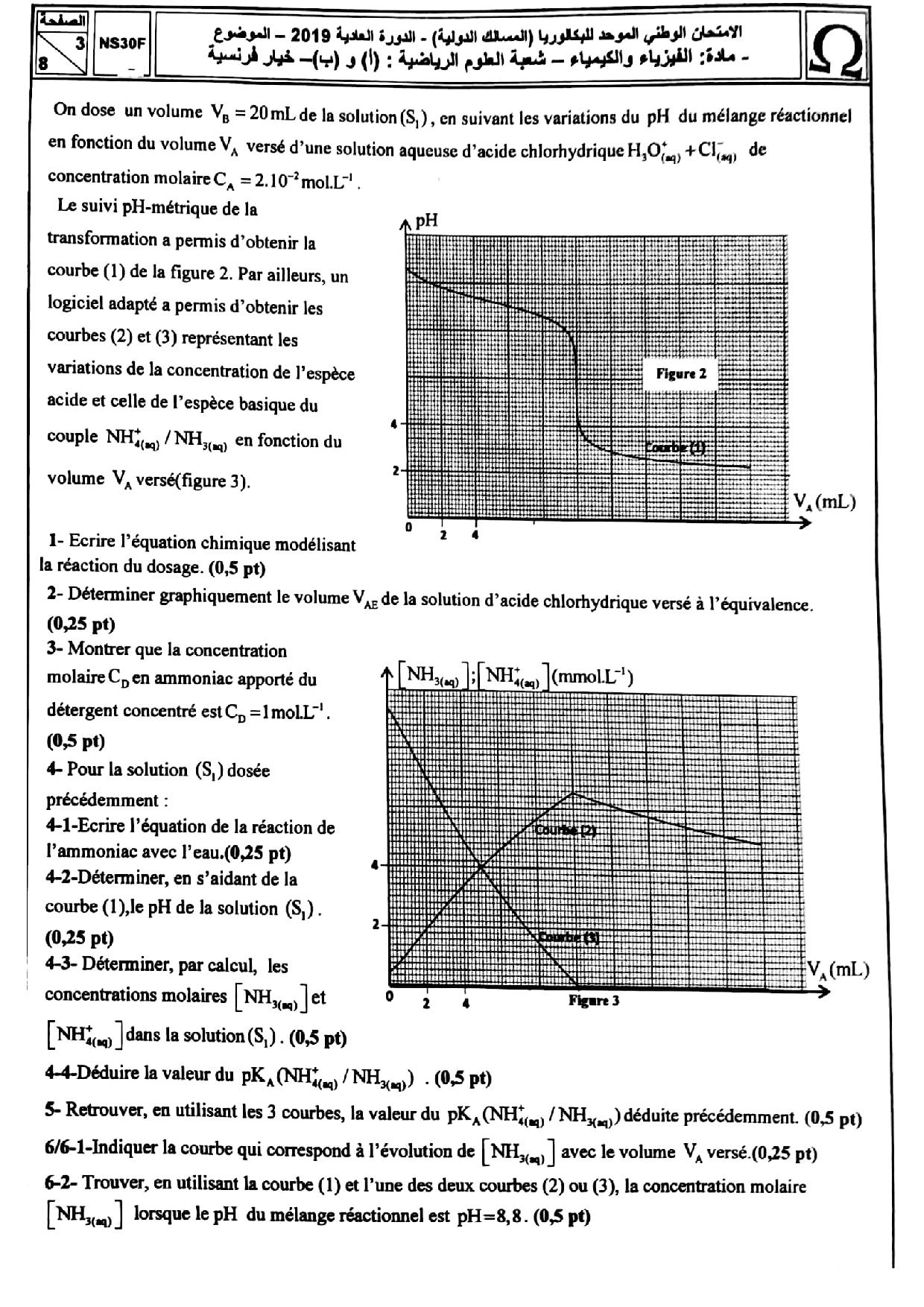 Examen National Physique-Chimie Sciences Maths 2019 Normale - Sujet