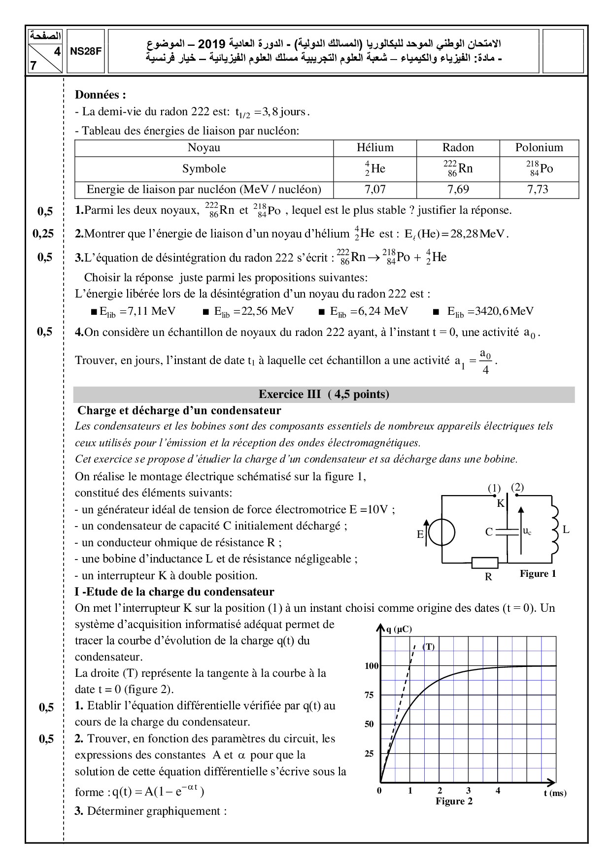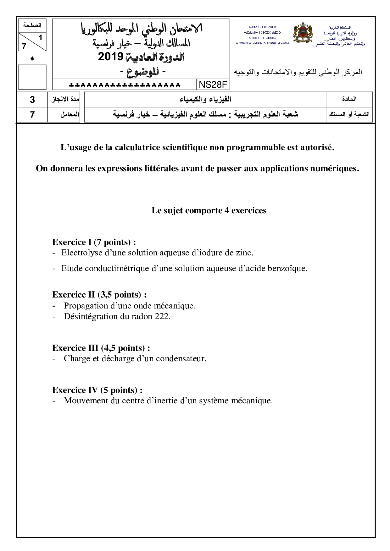Examen National Physique-Chimie SPC 2019 Normale - Sujet