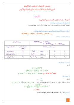 الفيزياء والكيمياء (علوم الحياة والأرض والعلوم والتكنولوجيات) 2019 الدورة العادية - التصحيح