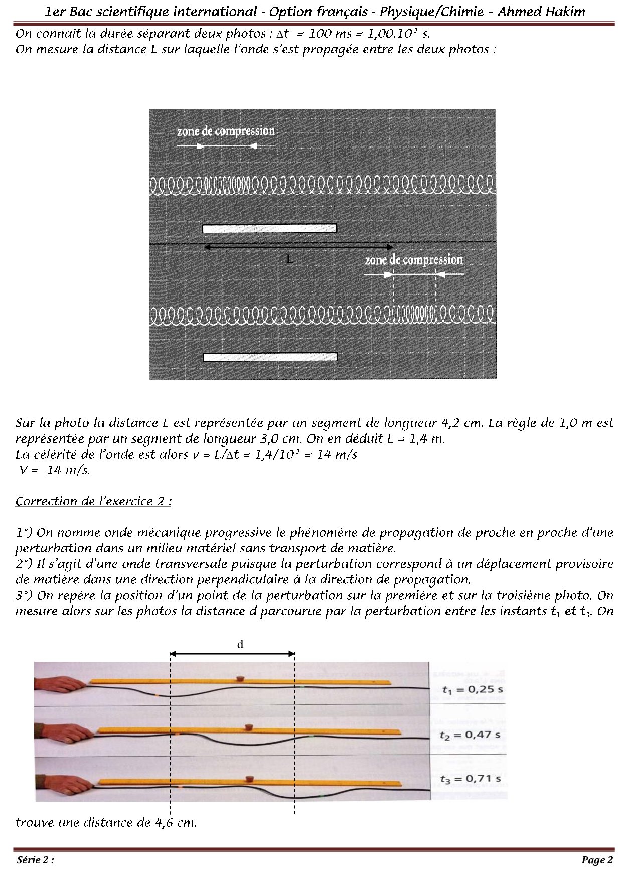 Les ondes mécaniques progressives périodiques - Exercices corrigés