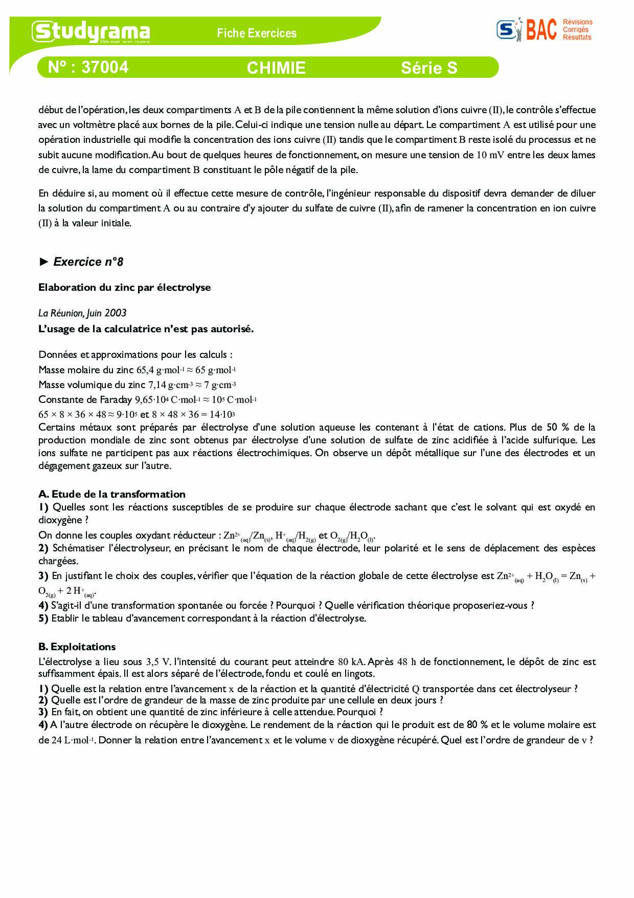 La transformation Spontanées dans les piles et la production d'énergie - Exercices non corrigés 3