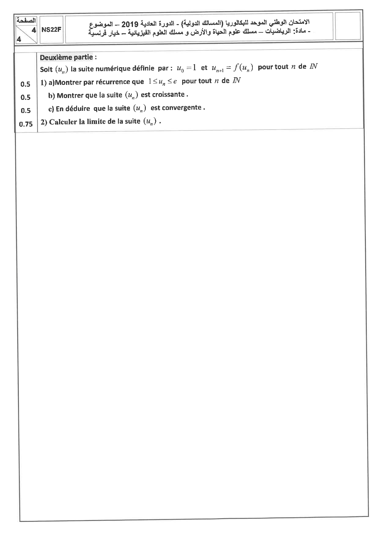 Examen National Maths Sciences et Technologies 2019 Normale - Sujet