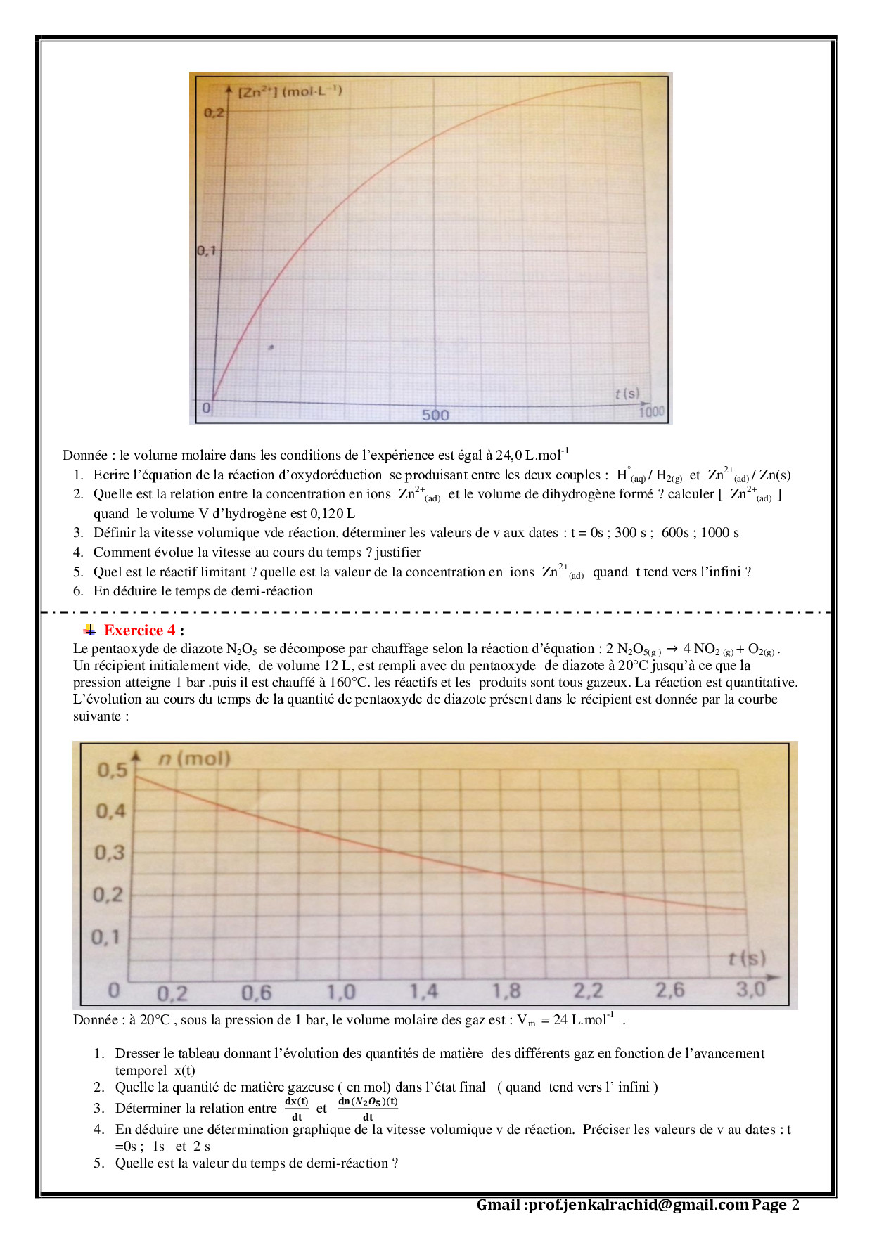 Le suivi temporel d'une transformation chimique - La vitesse de réaction - Exercices non corrigés 2