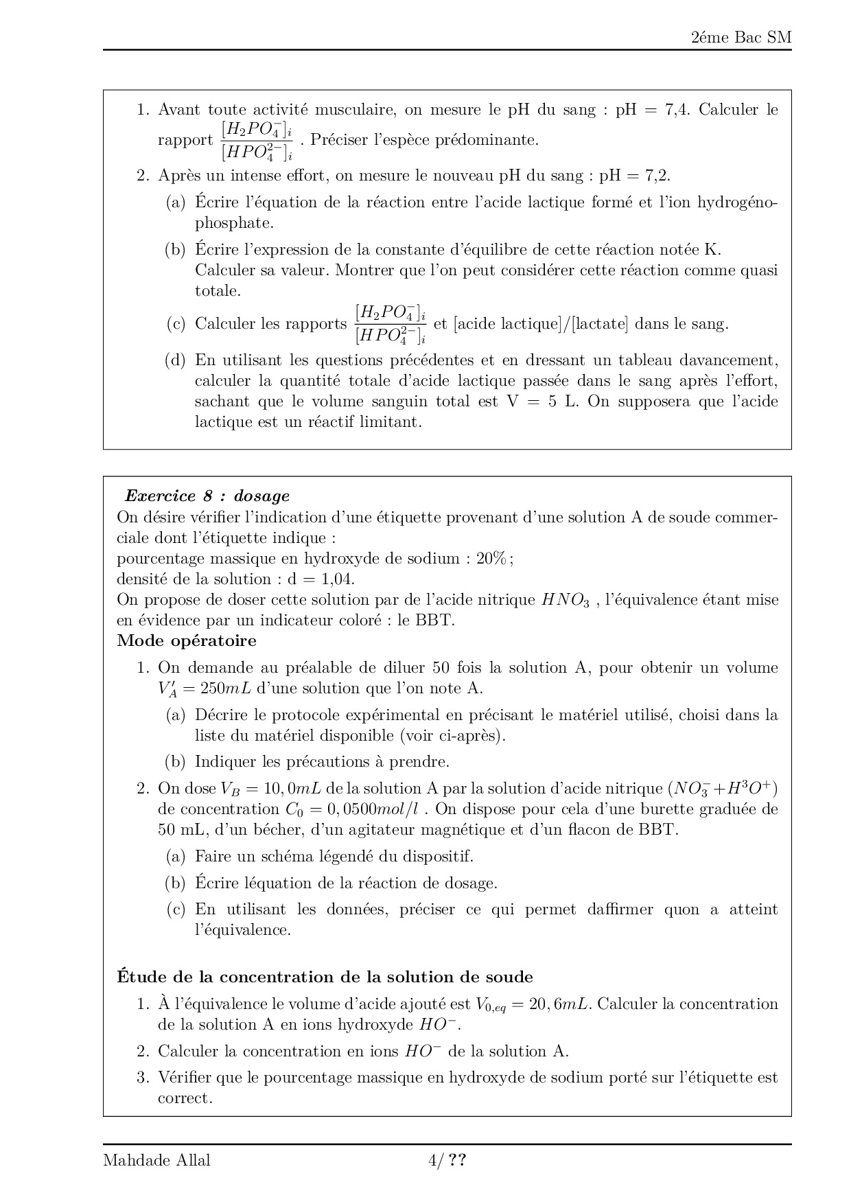 Les transformations liées à des réactions acide-base - Exercices non corrigés 2