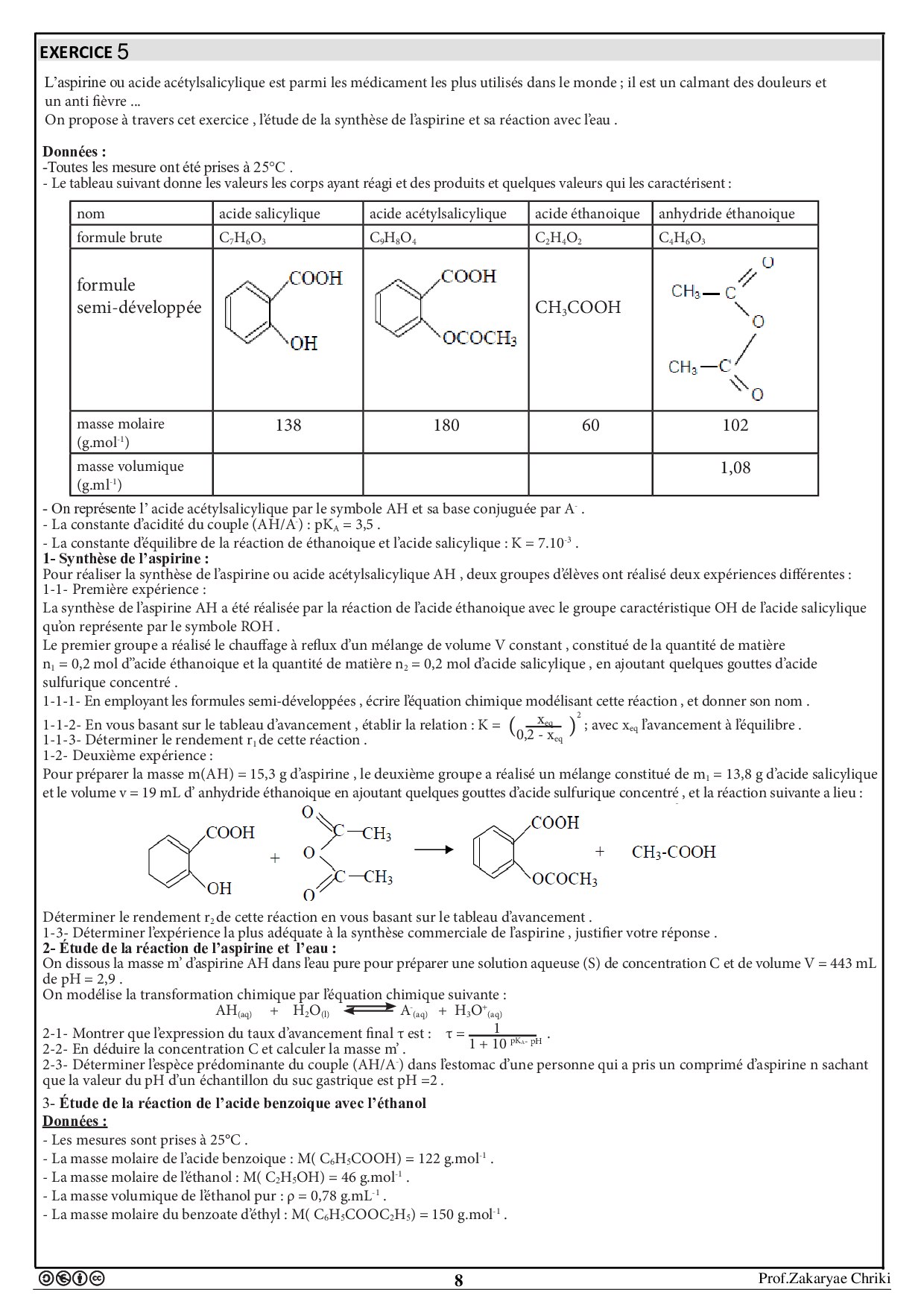 Les réactions d'estérification et d'hydrolyse - Exercices non corrigés 2