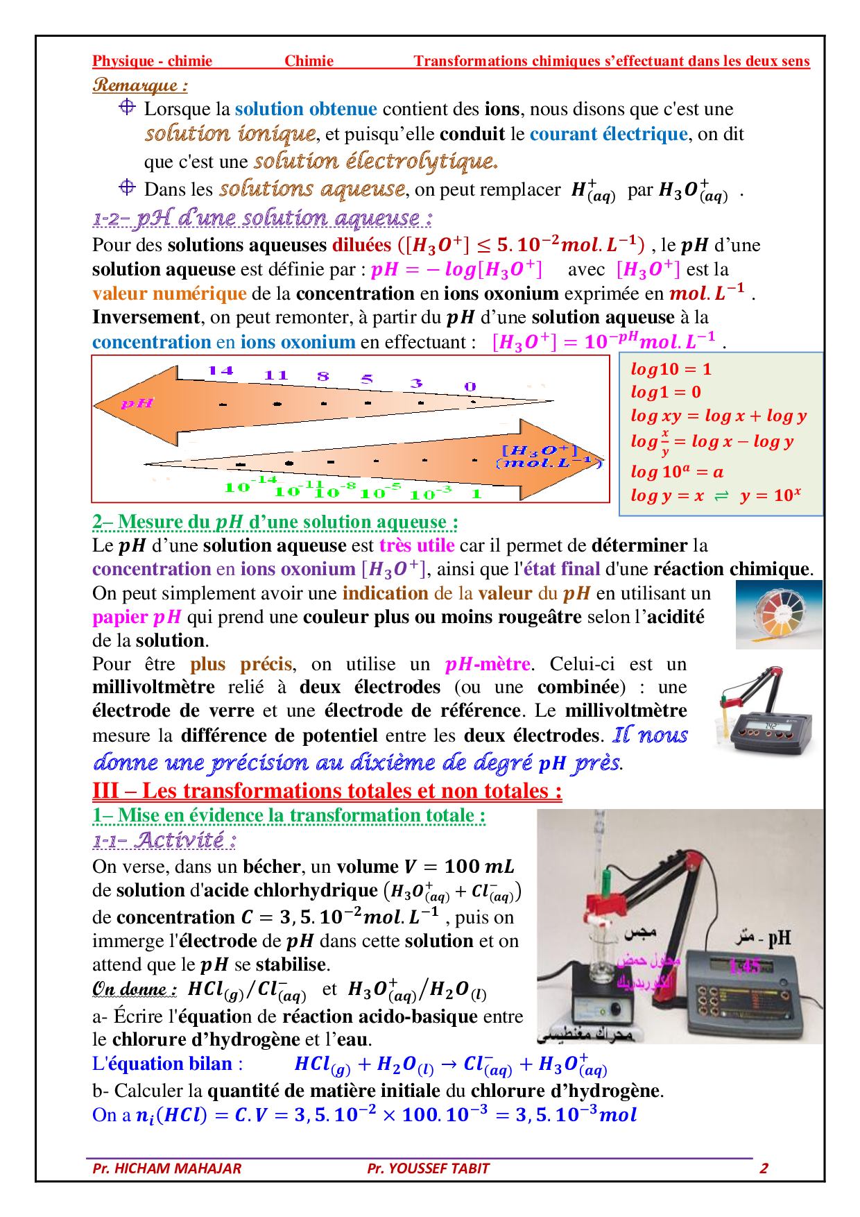 Les transformations chimiques qui s'effectuent dans les 2 sens - Cours 1