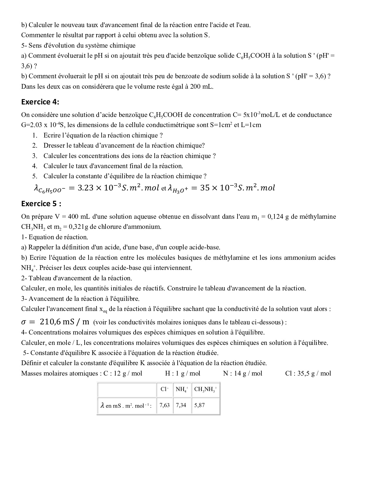 Les transformations chimiques qui s'effectuent dans les 2 sens - Exercices non corrigés 2