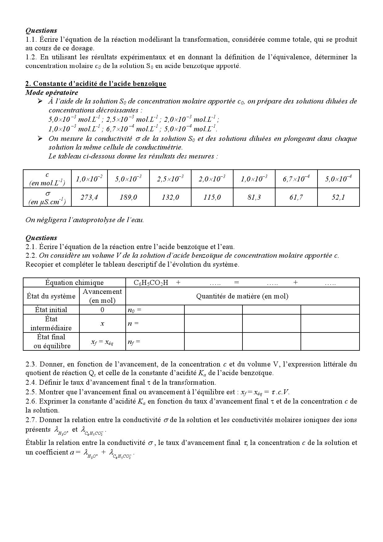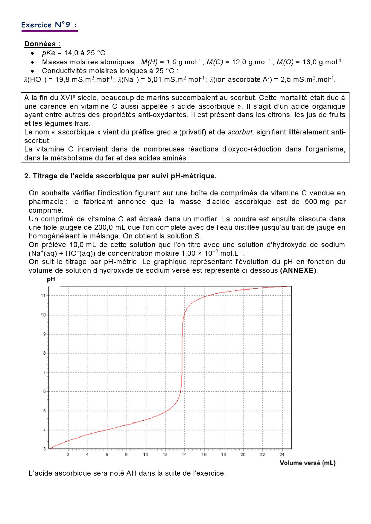 Les transformations liées à des réactions acide-base - Exercices non corrigés 3