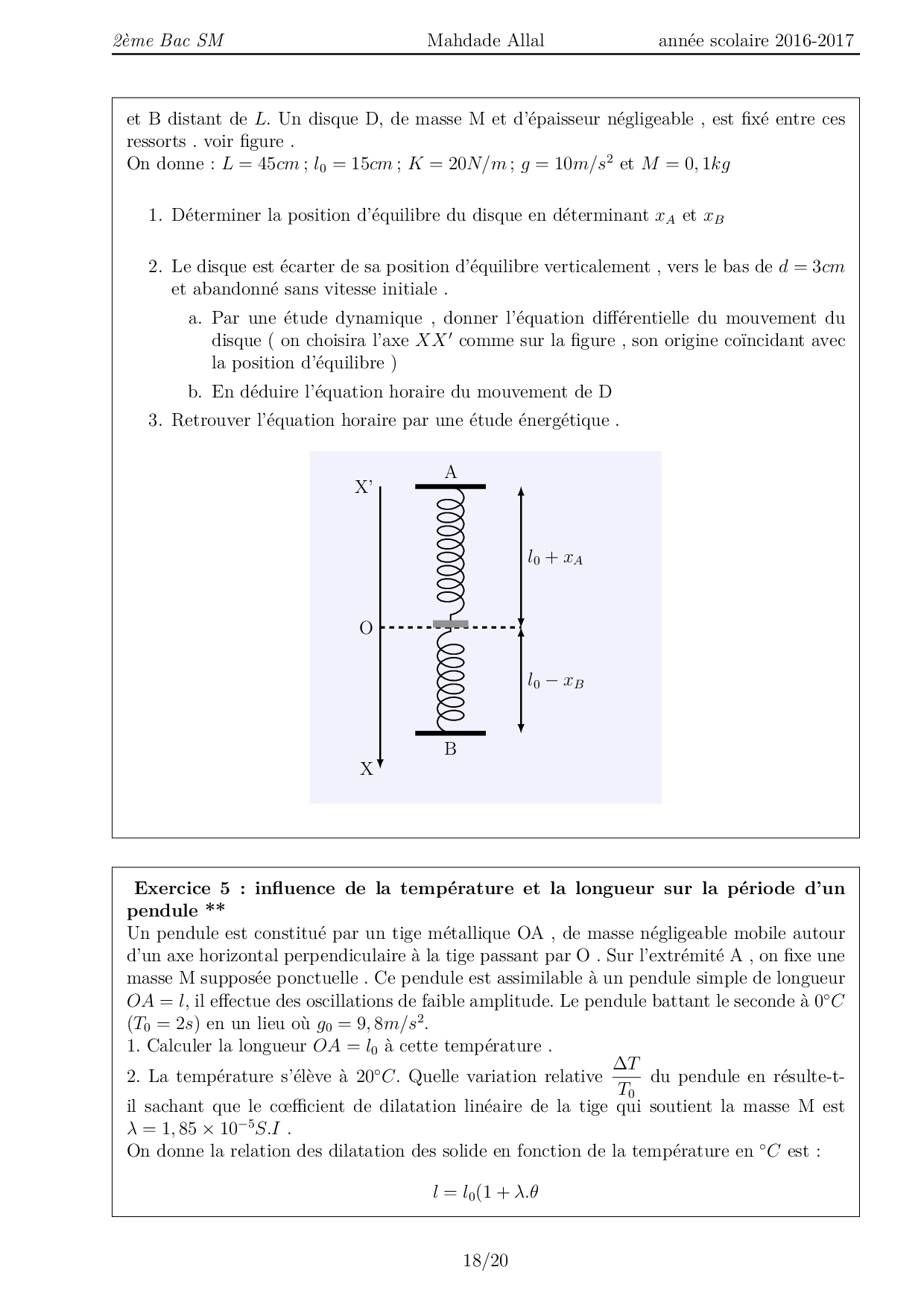 Les systèmes mécaniques oscillants - Exercices non corrigés 1