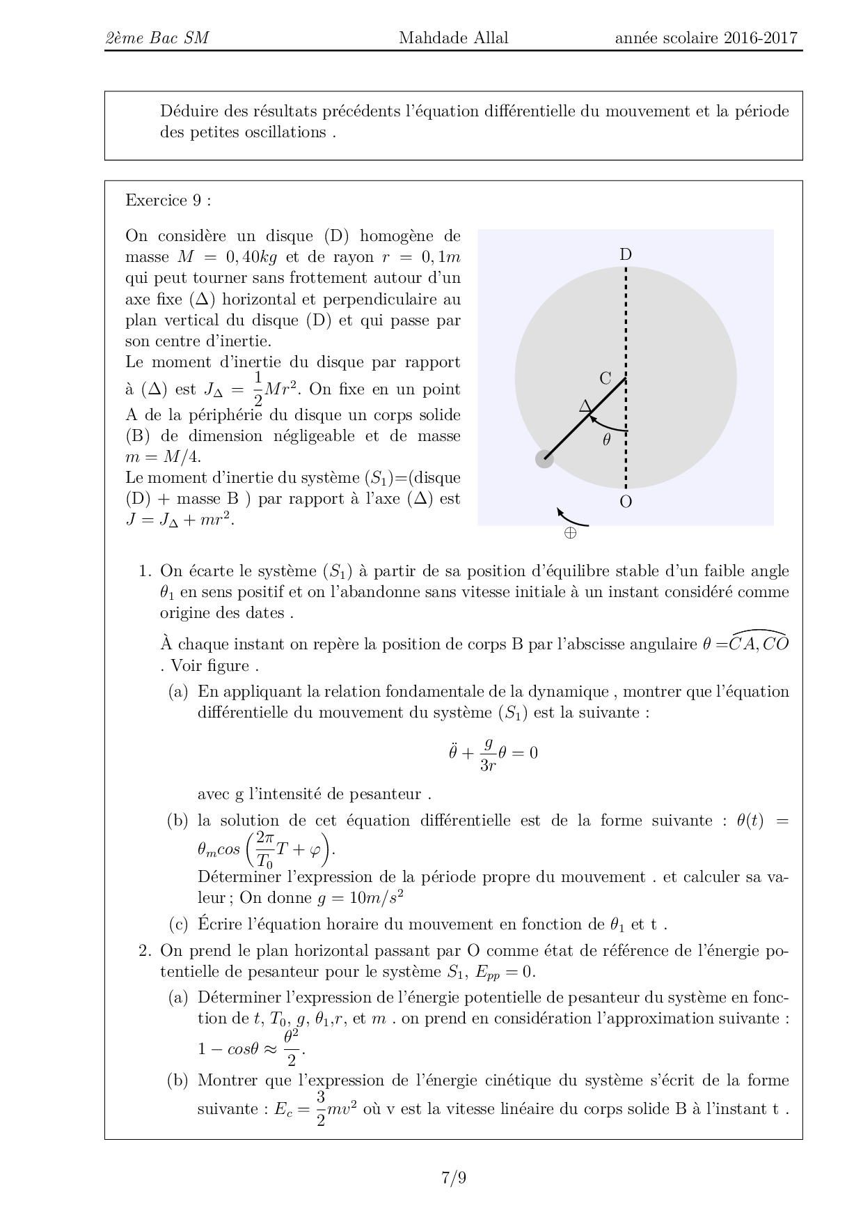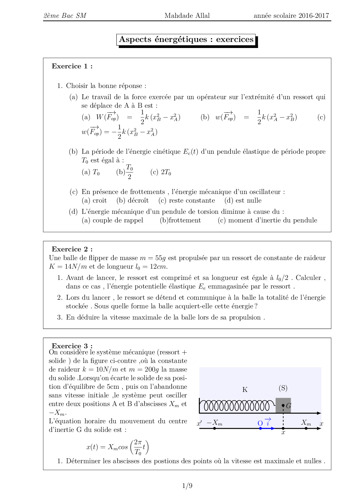 Les aspects énergétiques des oscillations mécaniques - Exercices non corrigés
