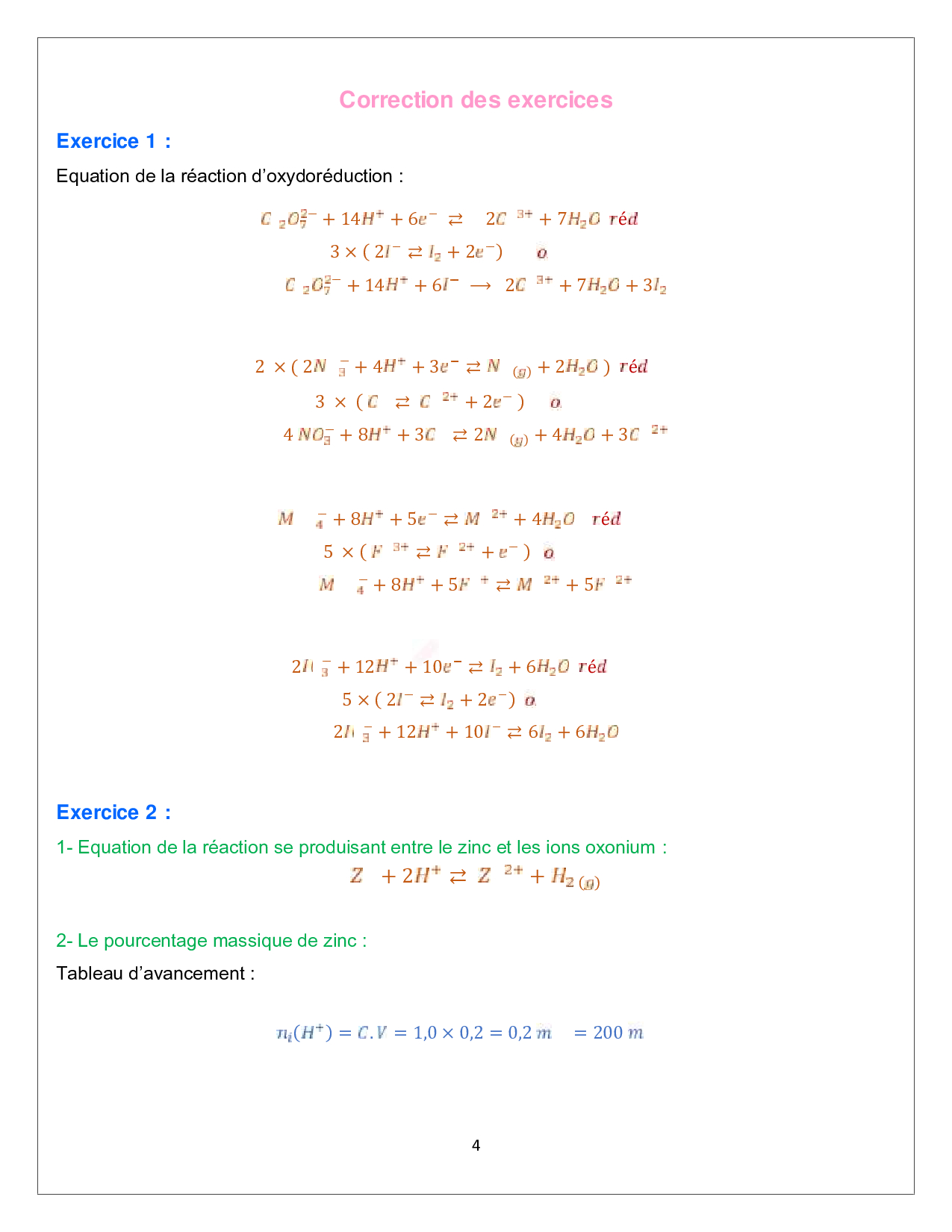 Les transformations lentes et les transformations rapides - Corrigé série d'exercices