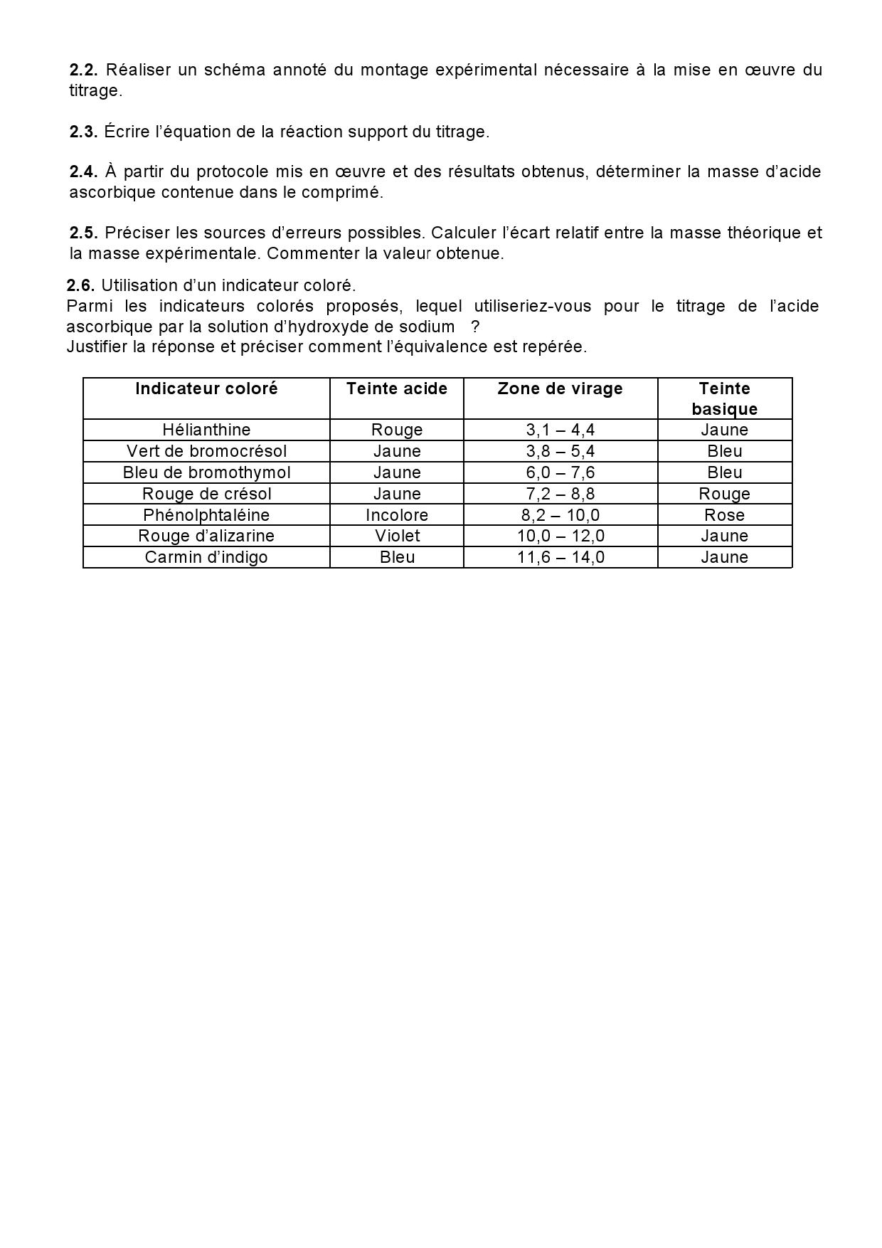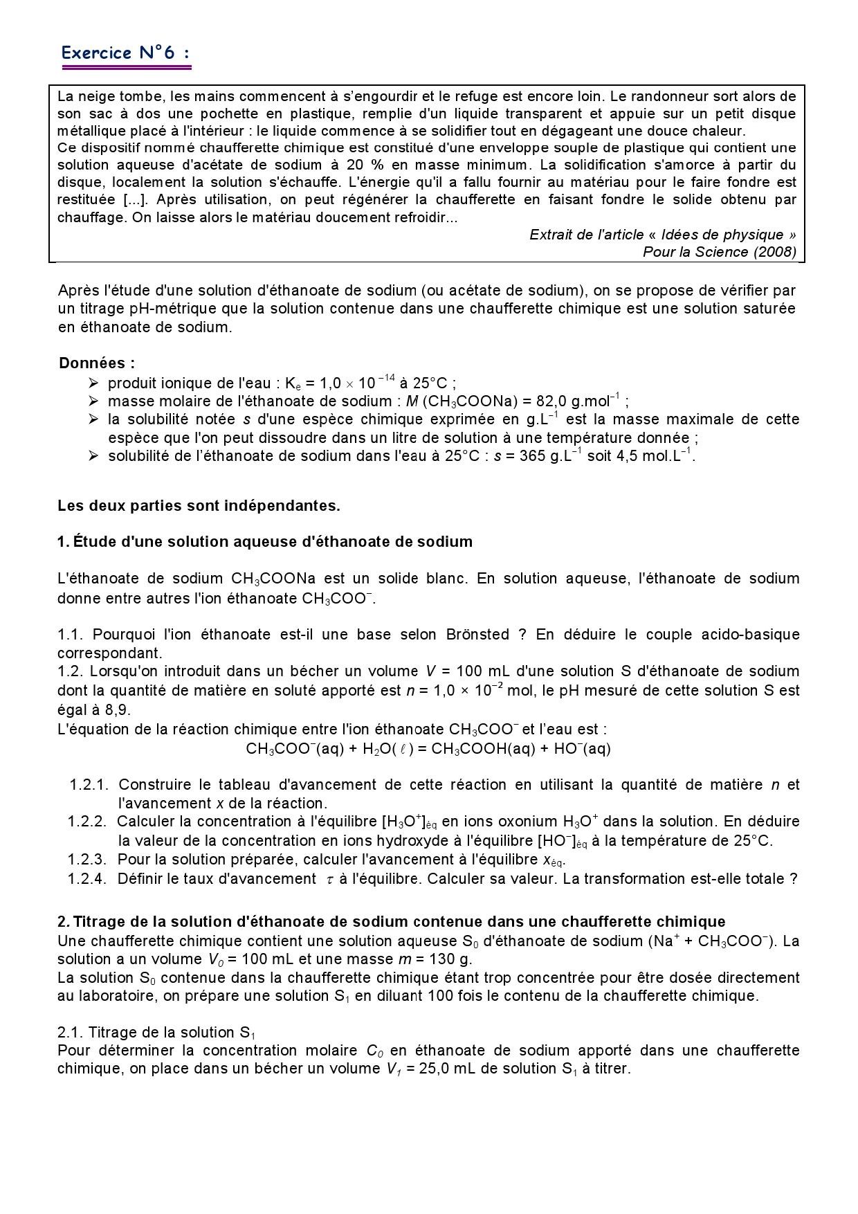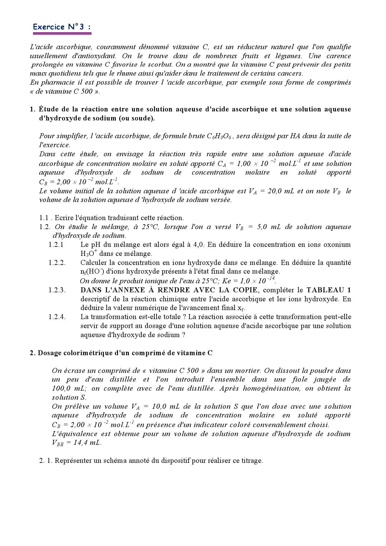 Les transformations liées à des réactions acide-base - Exercices non corrigés 3