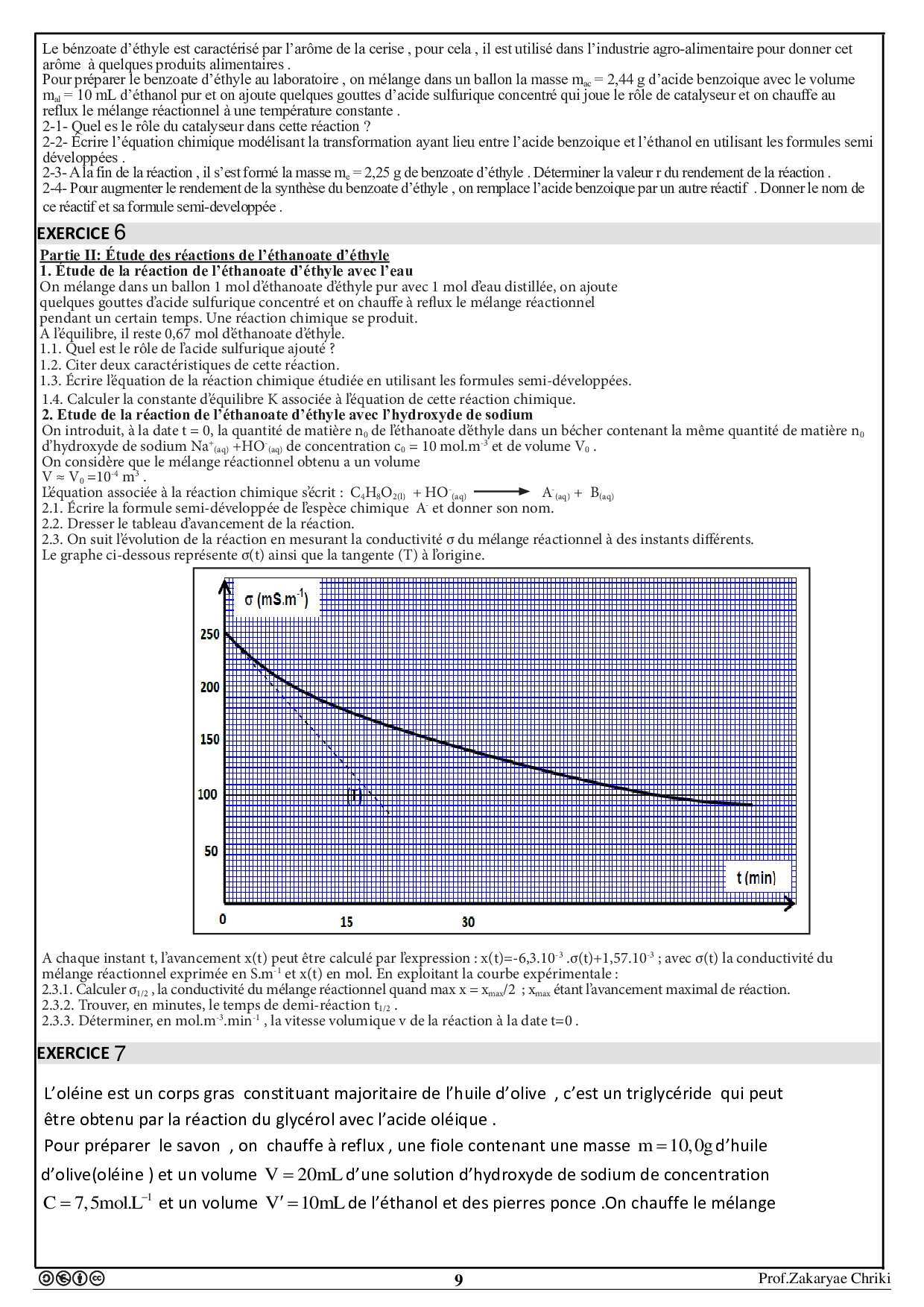 Les réactions d'estérification et d'hydrolyse - Exercices non corrigés 2