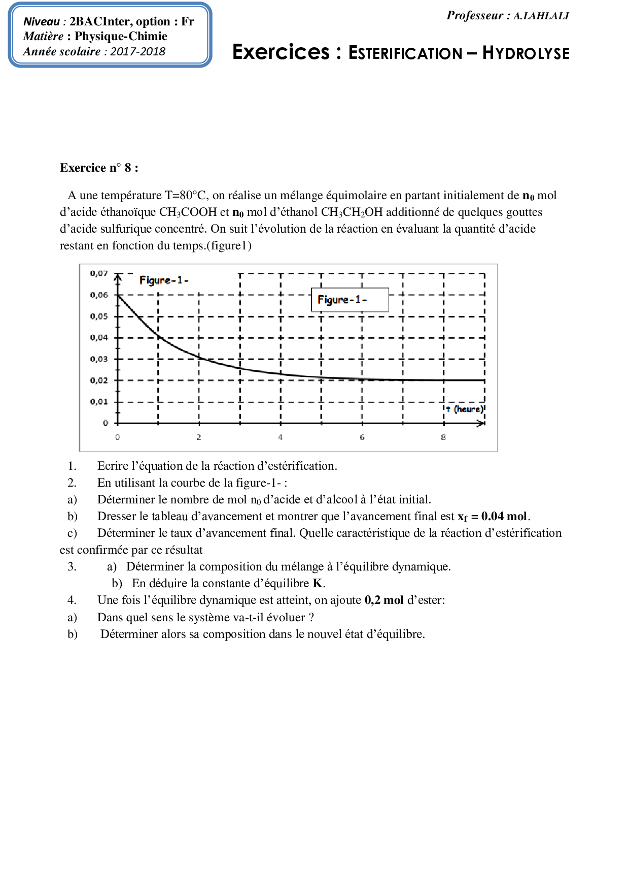 Les réactions d'estérification et d'hydrolyse - Exercices non corrigés 3