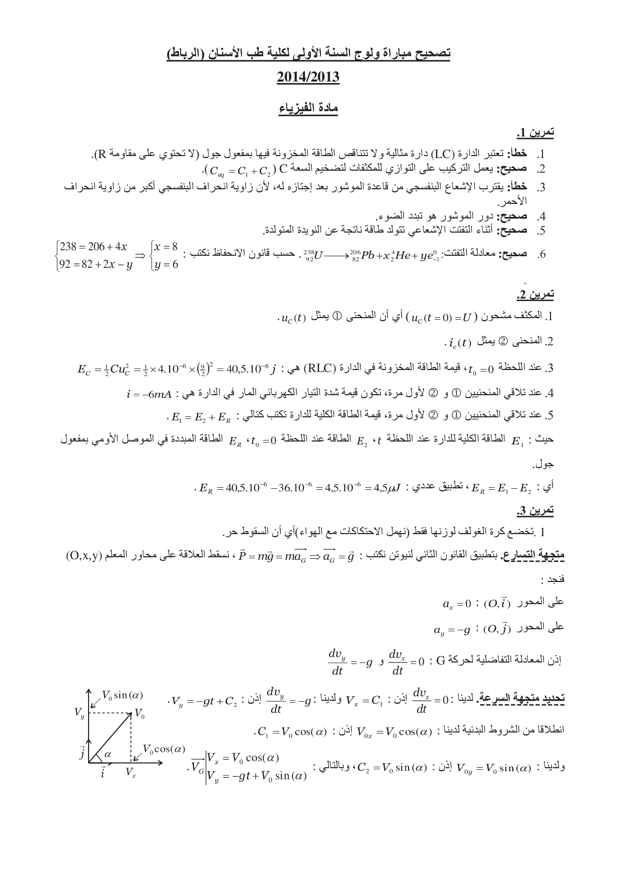 مباراة ولوج كلية طب الأسنان 2013 (الرباط) - التصحيح