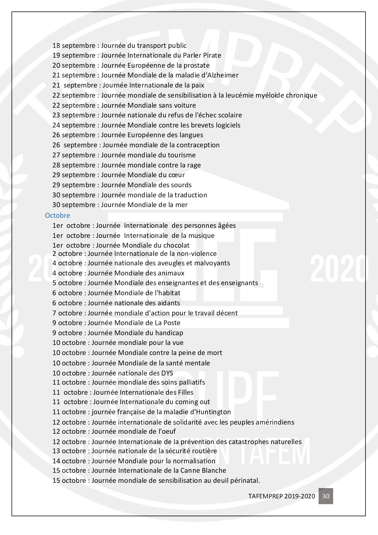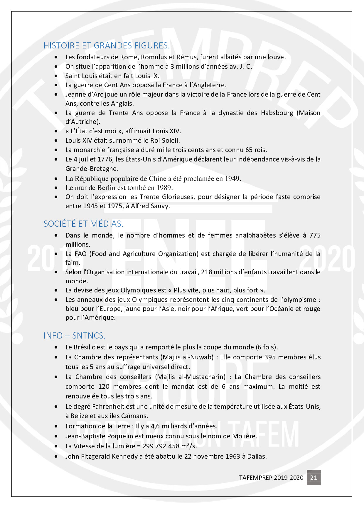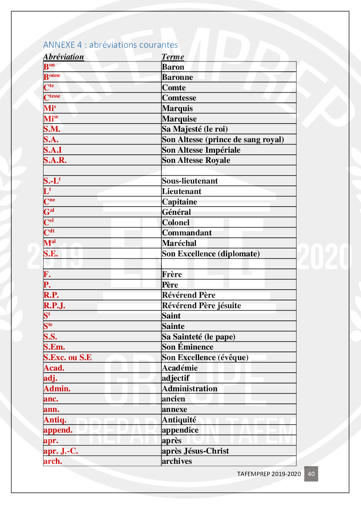 Informations importantes pour préparer le TAFEM