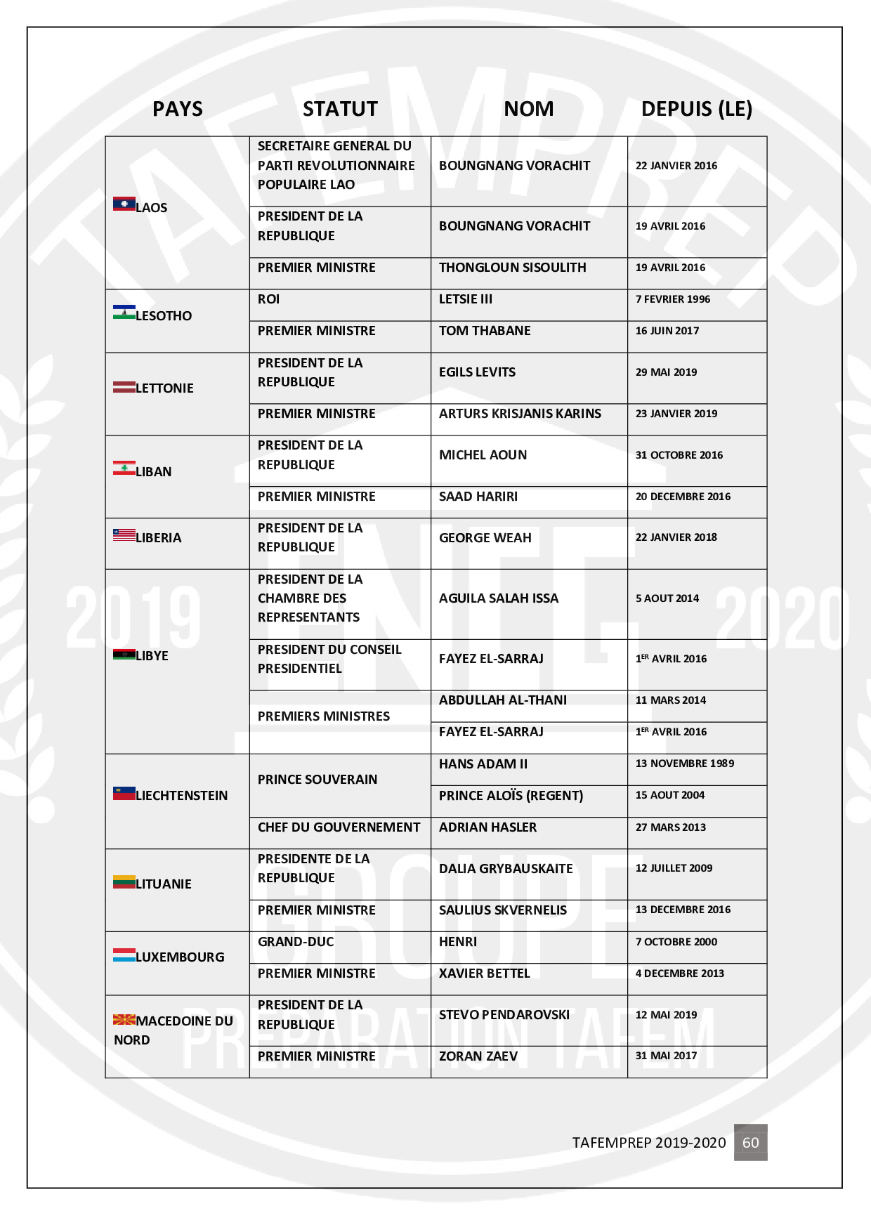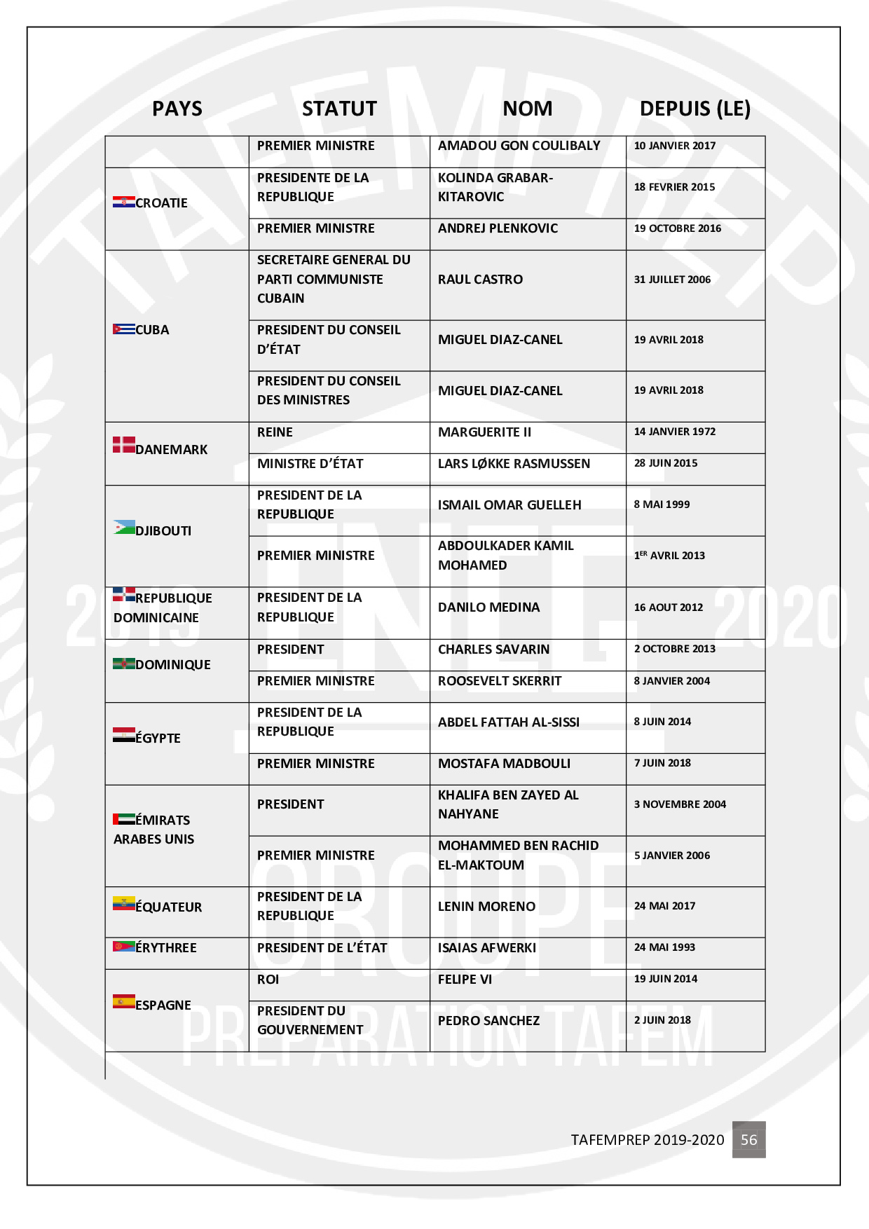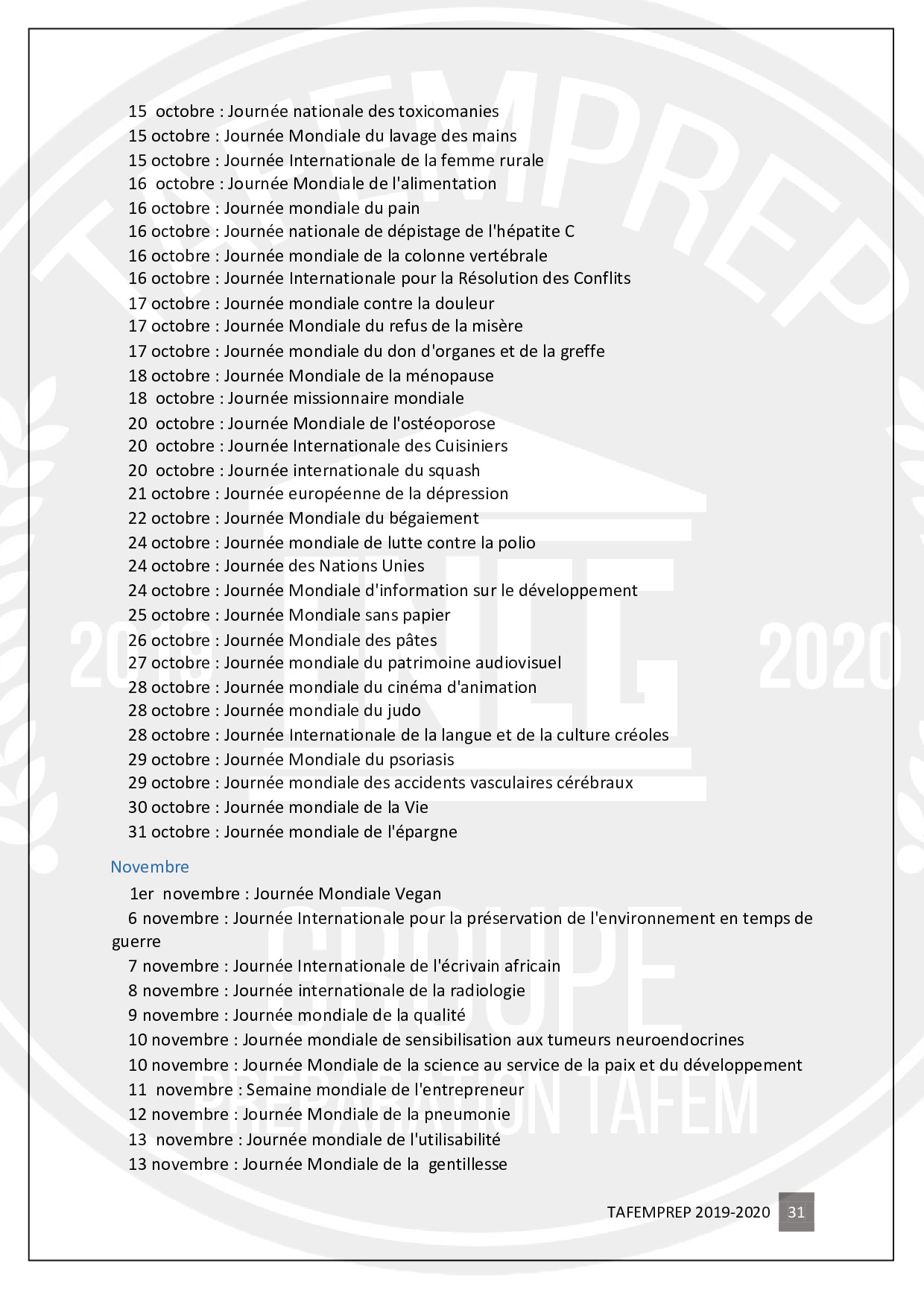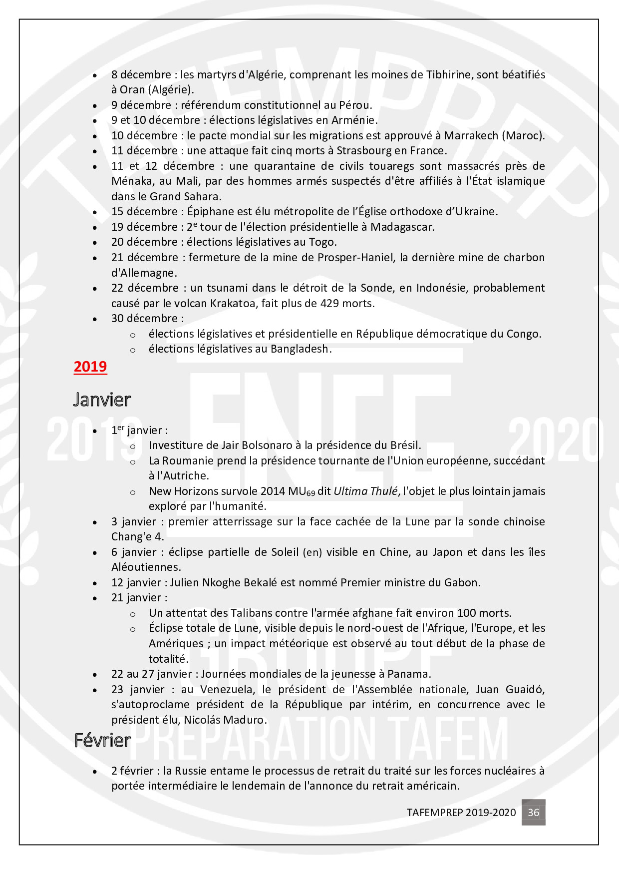 Informations importantes pour préparer le TAFEM
