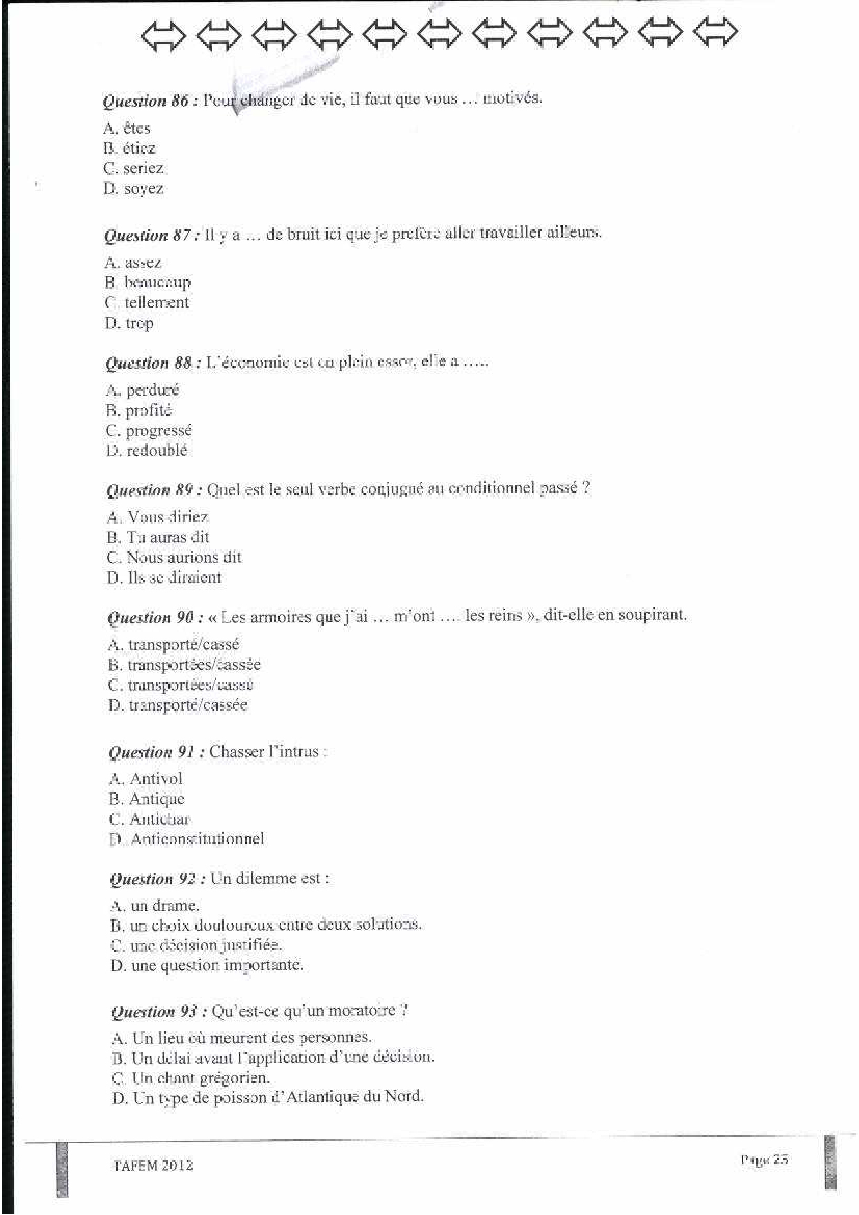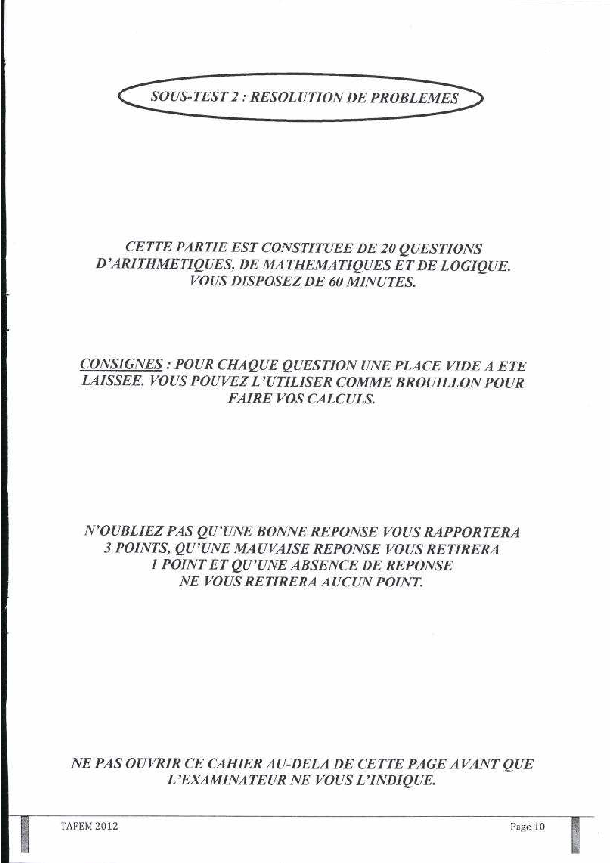 Test d'Admission à la Formation En Management (TAFEM) 2012 - Epreuve