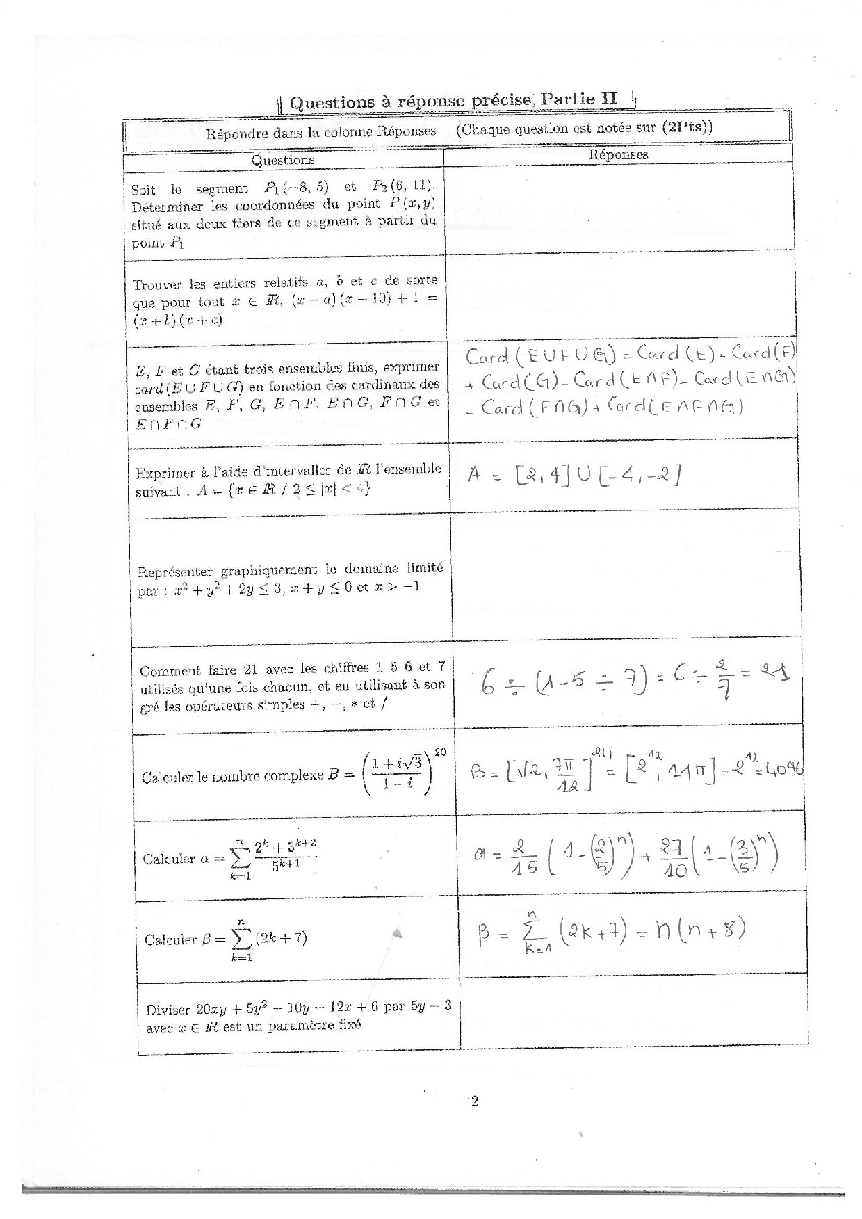 Concours d'entrée ENSAM 2011 SPC-SVT-STE-STM (Maths) - Corrigé