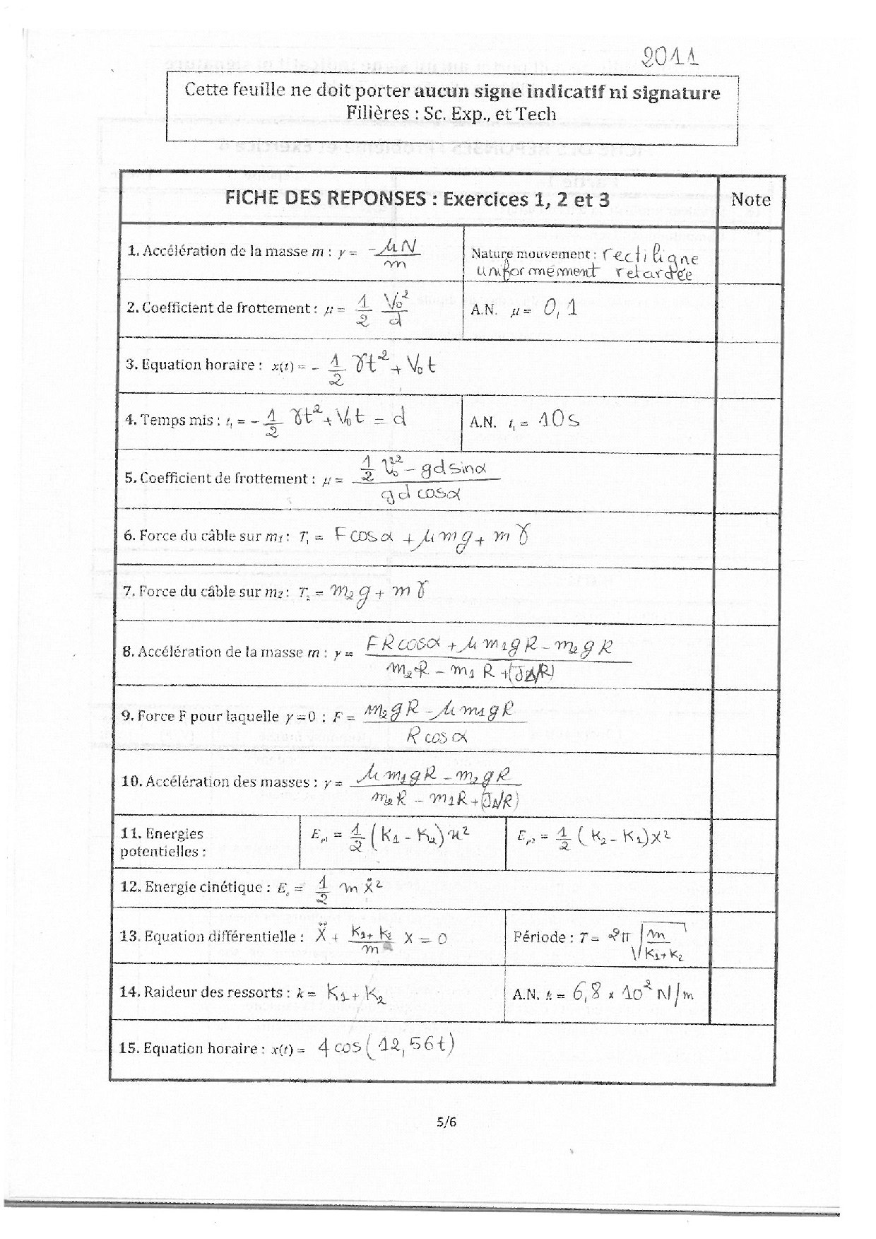 Concours d'entrée ENSAM 2011 SPC-SVT-STE-STM (Physique) - Corrigé