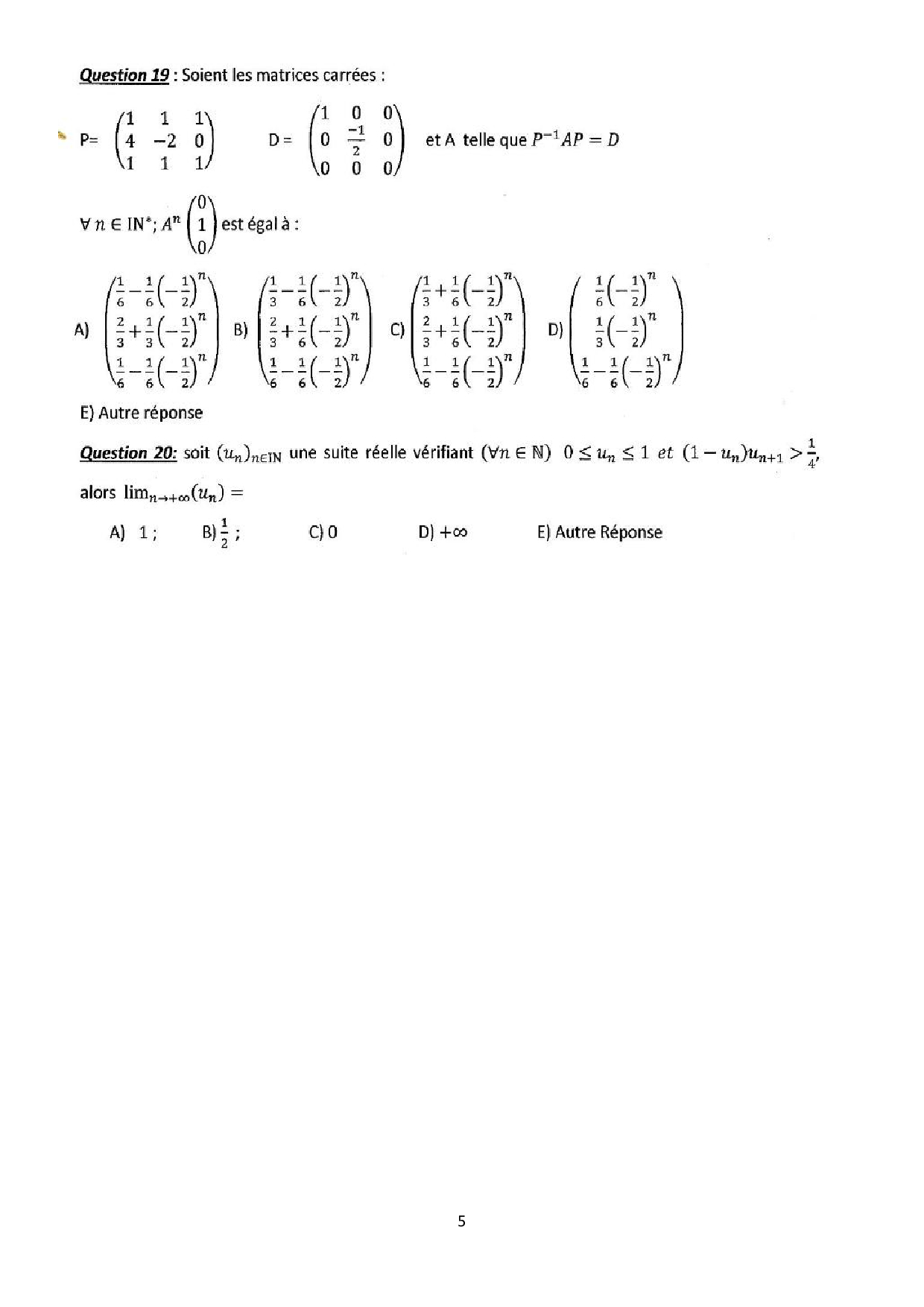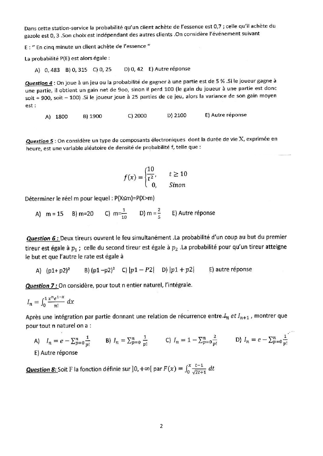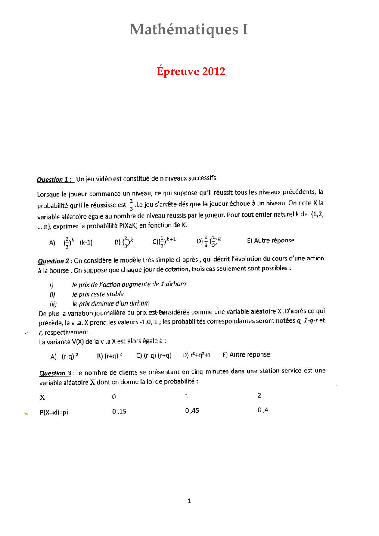 Concours d'entrée ISCAE 2012 - Mathématiques 1
