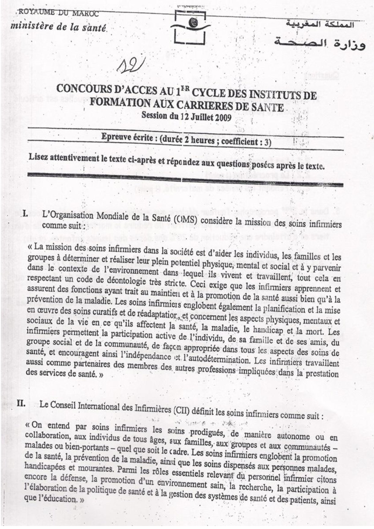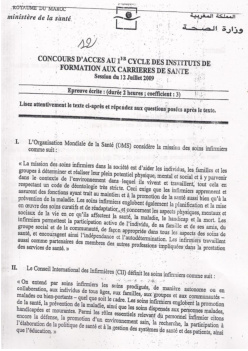 مباراة ولوج المعاهد العليا للمهن التمريضية وتقنيات الصحة 2009 - تحليل نص