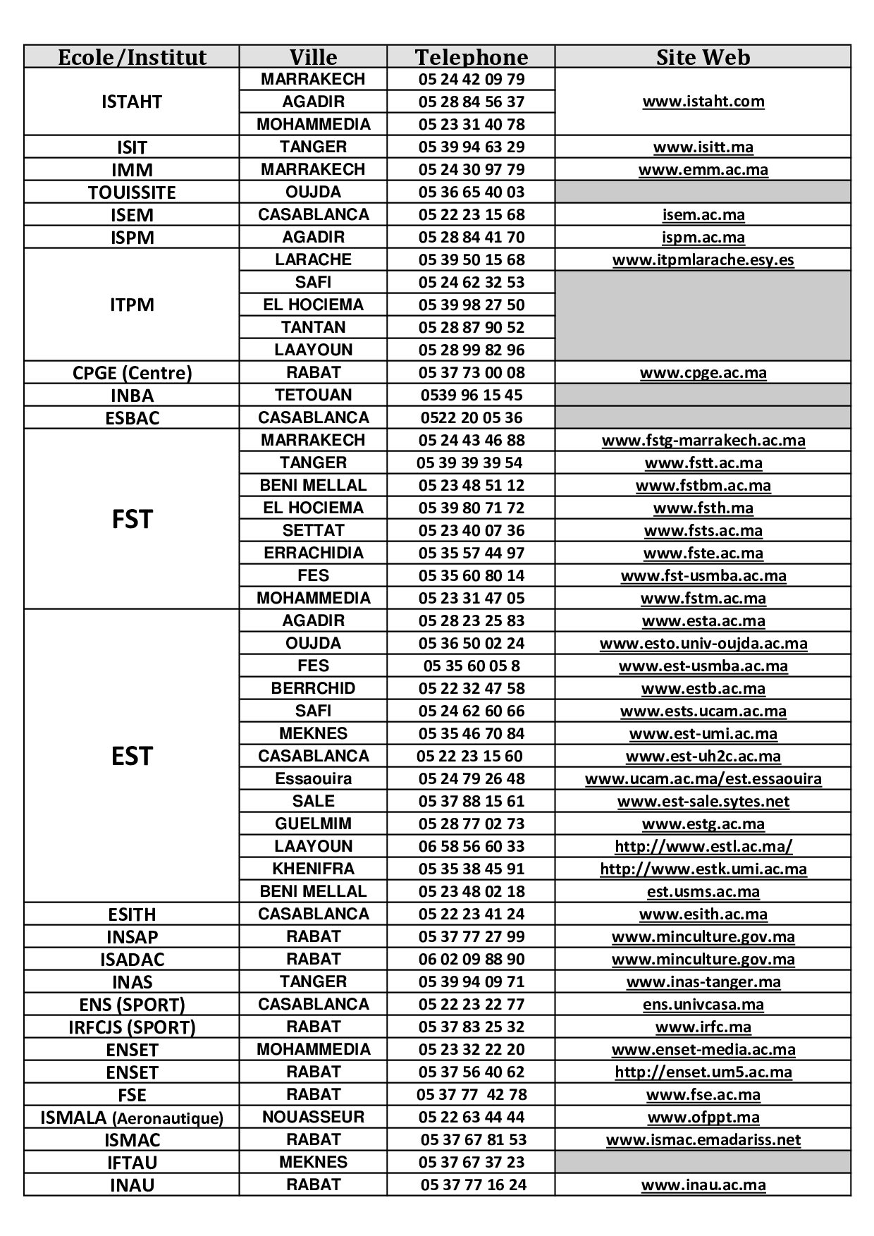 تفاصيل الاتصال بالمدارس والمعاهد العامة في المغرب
