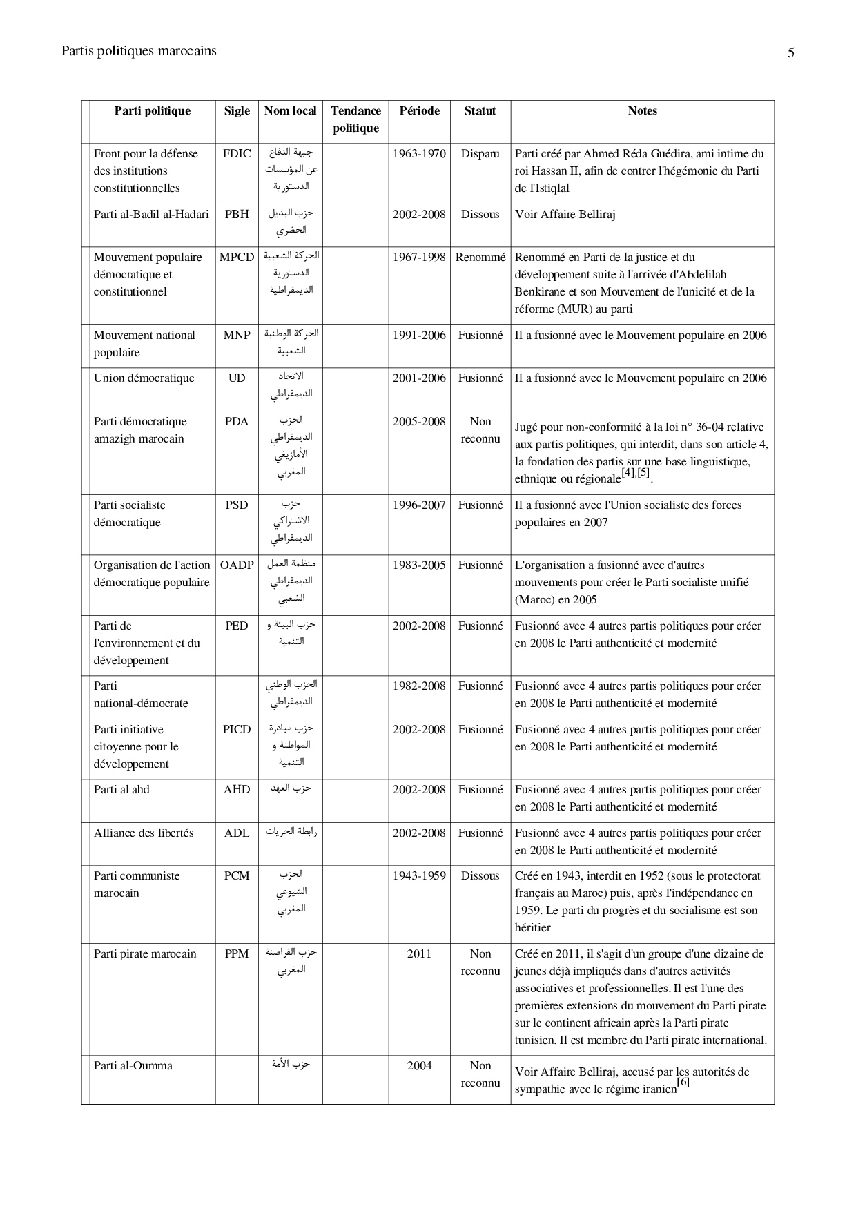 Concours ISITT 2014 - Partis politiques marocains