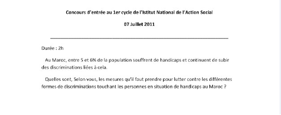 مباراة ولوج المعهد الوطني للعمل الاجتماعي 2011 - موضوع إنشائي باللغة الفرنسية