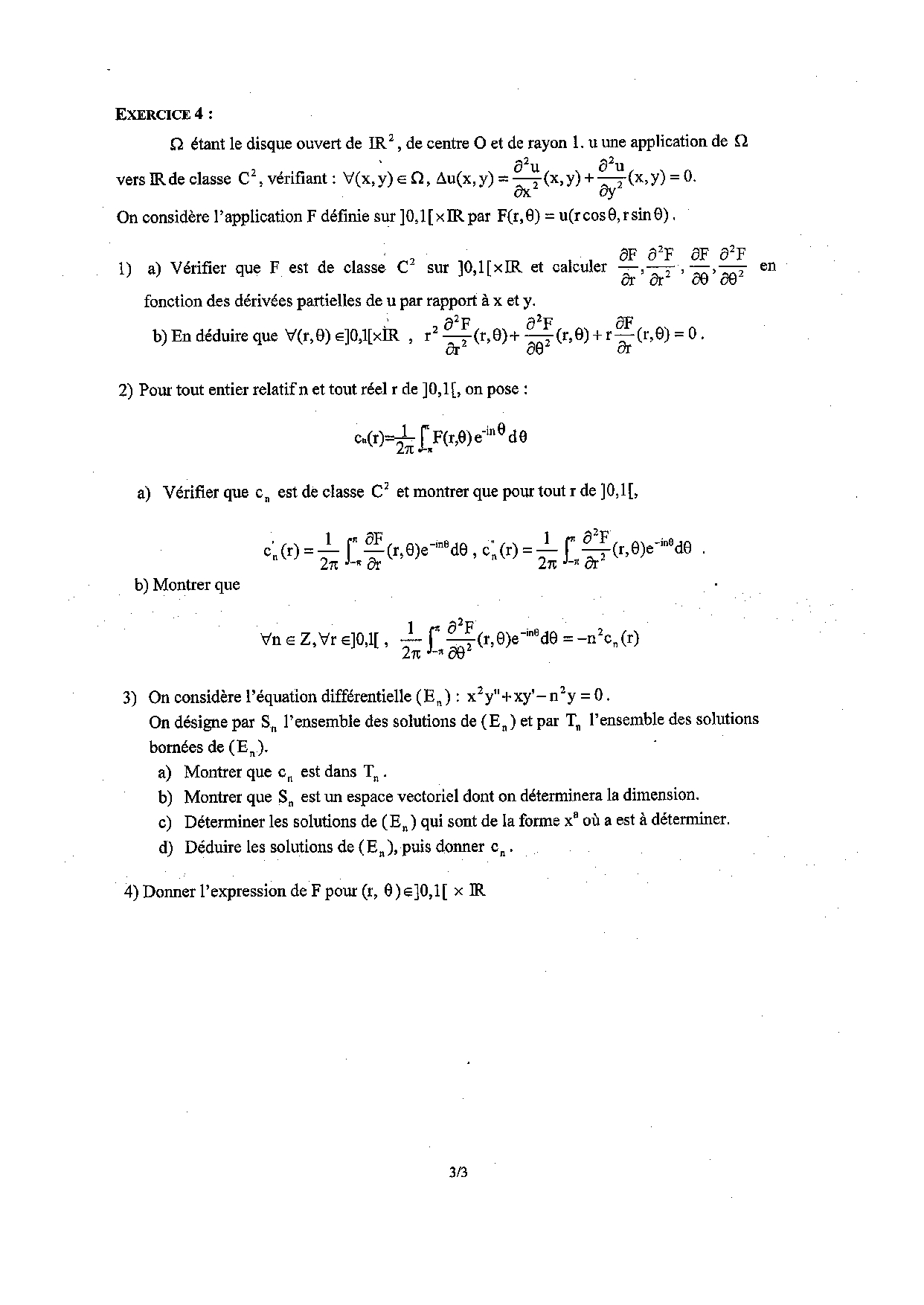 Concours d'entrée INPT 1ère année 2001 - Mathématiques