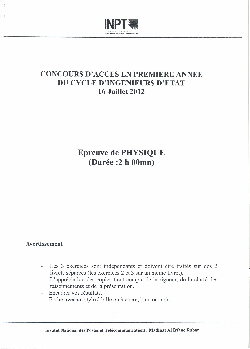 Concours d'entrée INPT 1ère année 2012 - Physique
